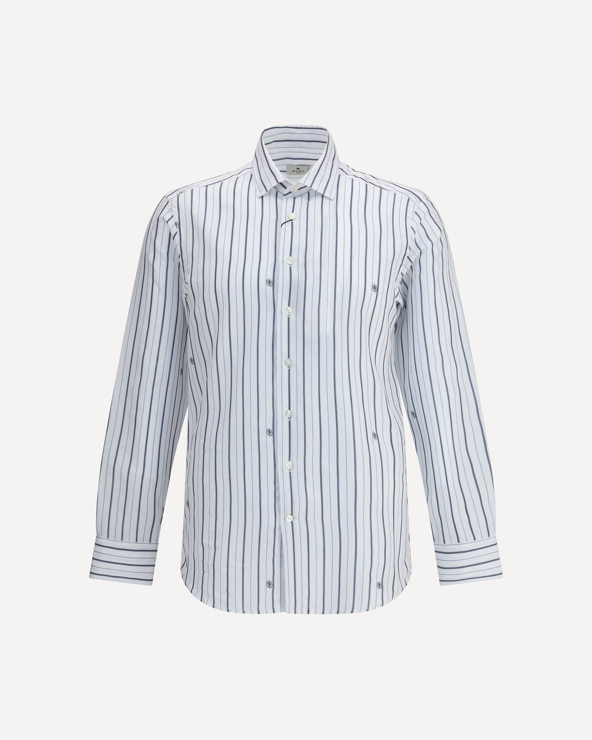 Etro's striped Shirt is made of jacquard cotton and features a striped pattern embellished with a micro Pegasus, the brand's iconic symbol. With a regular fit, it features a pointed collar, button closure and double-button cuffs, combining elegance and practicality in a refined garment. DETAILS - Sku: MRIB000199TJ586_S8461 - Season: AW25 - Fit: Regular - Composition: GENERAL 100% Cotton - MADE IN ITALY