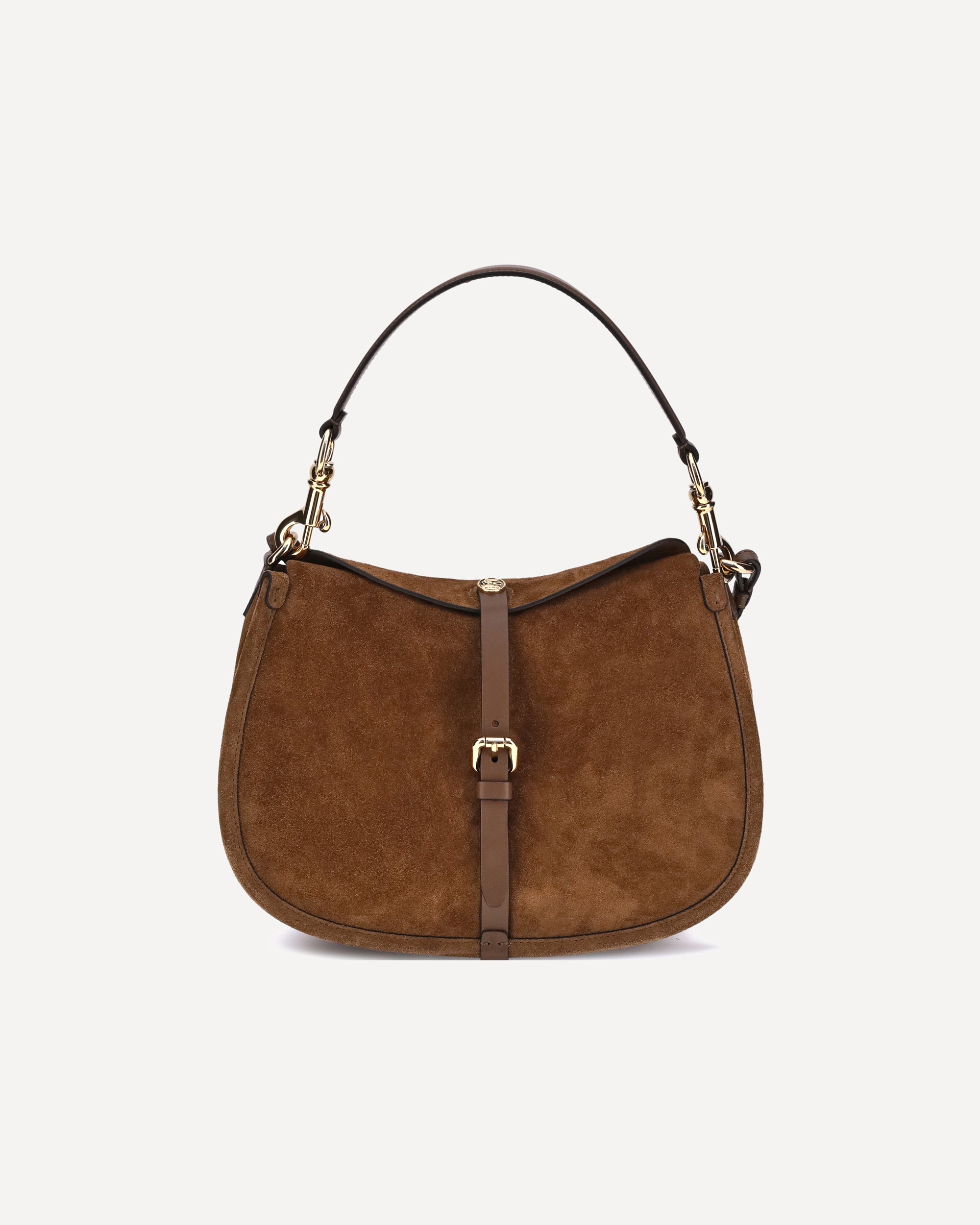 The Pony Shoulder Bag by Etro, made of suede, stands out for its double closure: the main one with a magnetic button decorated with the ETRO logo and the Pegasus, engraved with the refined coin minting technique, and the secondary one with a functional metal buckle. The design is completed by the interchangeable handle and shoulder strap. DETAILS - Sku: WP1C0019AP341_M0453 - Season: AW25 - Dimension: 29x29x10 - Composition: GENERAL 100% Calf Leather Bos Taurus - MADE IN ITALY