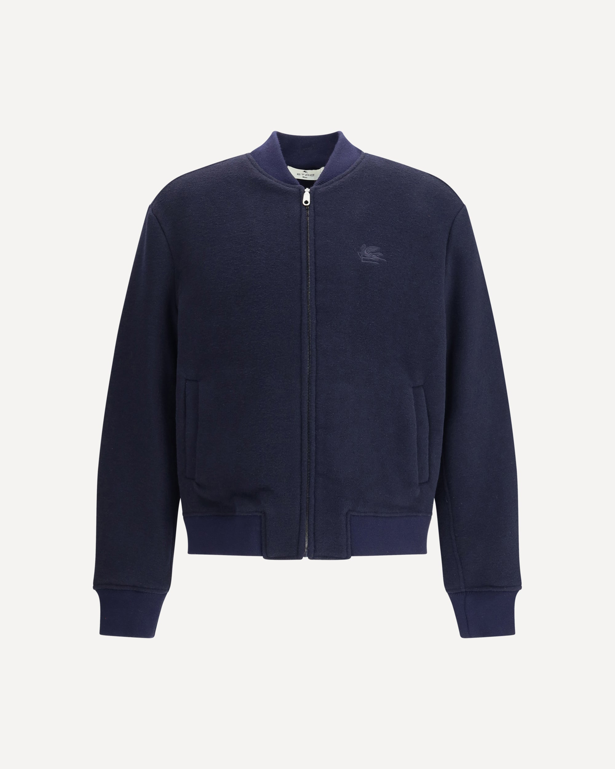 Wool bomber Jacket by Etro features a ribbed collar, cuffs and hem, and front zipper closure. The design is completed by two side welt pockets and the iconic tone-on-tone embroidered Pegasus logo on the front for a distinctive and elegant touch. A garment that combines sartorial tradition and contemporary style. DETAILS - Sku: MRBA001699TQB69_S9885 - Season: AW25 - Fit: Regular - Composition: GENERAL 57% Wool 32% Polyester 6% Polyamide 5% Other Fibres - MADE IN ITALY