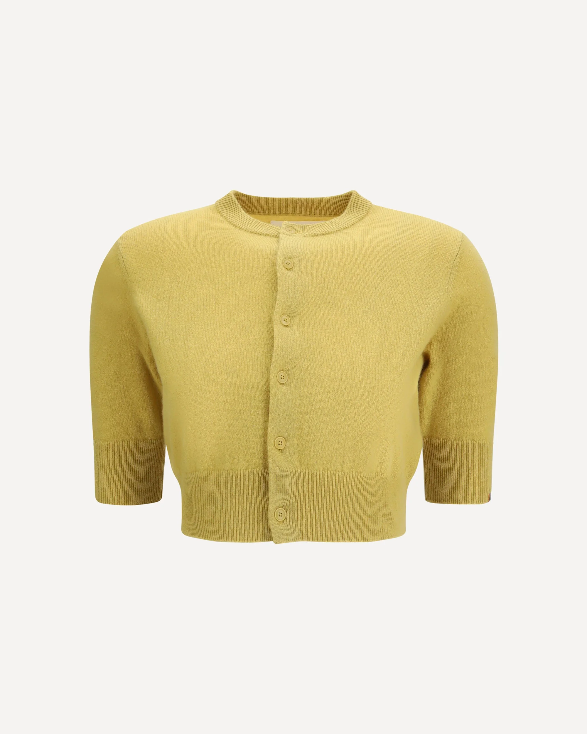 The N°474 Super Little is a cropped crewneck Cardigan by Extreme Cashmere, crafted from luxurious 100% cashmere. Designed for petite frames, it features an ultra-cropped silhouette that falls between the bust and the navel. Ribbed trims at the neckline, hem, and cuffs define the style, while the cropped sleeves end just above the elbow. Six corozo buttons complete the piece with a refined, natural finish. DETAILS - Sku: 47421001TU02_CORN - Season: SS26 - Fit: Slim - Composition: GENERAL 100% Kashmir/capra Hircus - MADE IN CHINA