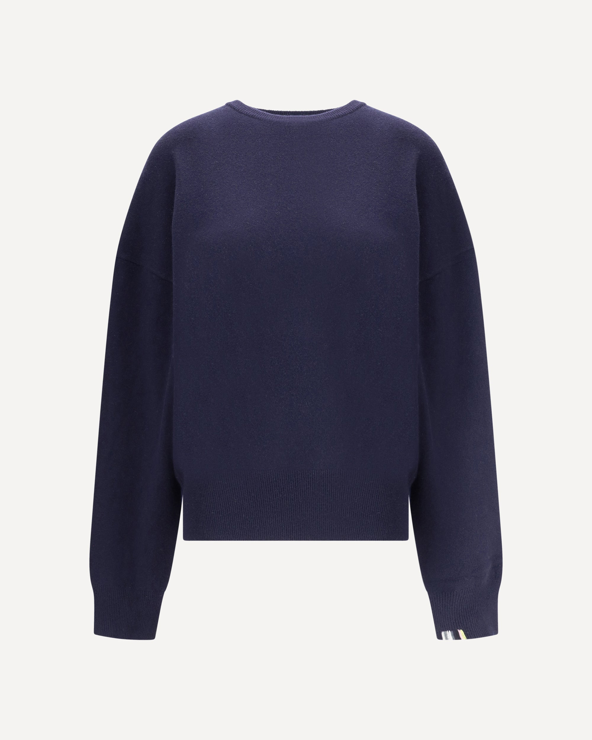 The Tes Sweater by Extreme Cashmere is a garment with a modern and comfortable design. Featuring a crew neck, dropped shoulders and a ribbed maxi hem, it is complemented by ribbed cuffs that add structure and detail to a soft and versatile pattern. DETAILS - Sku: 35500101TU01_NAVY - Season: AW25 - Fit: Regular - Composition: GENERAL 88% Kashmir/capra Hircus 10% Polyamide 2% Spandex - MADE IN CHINA