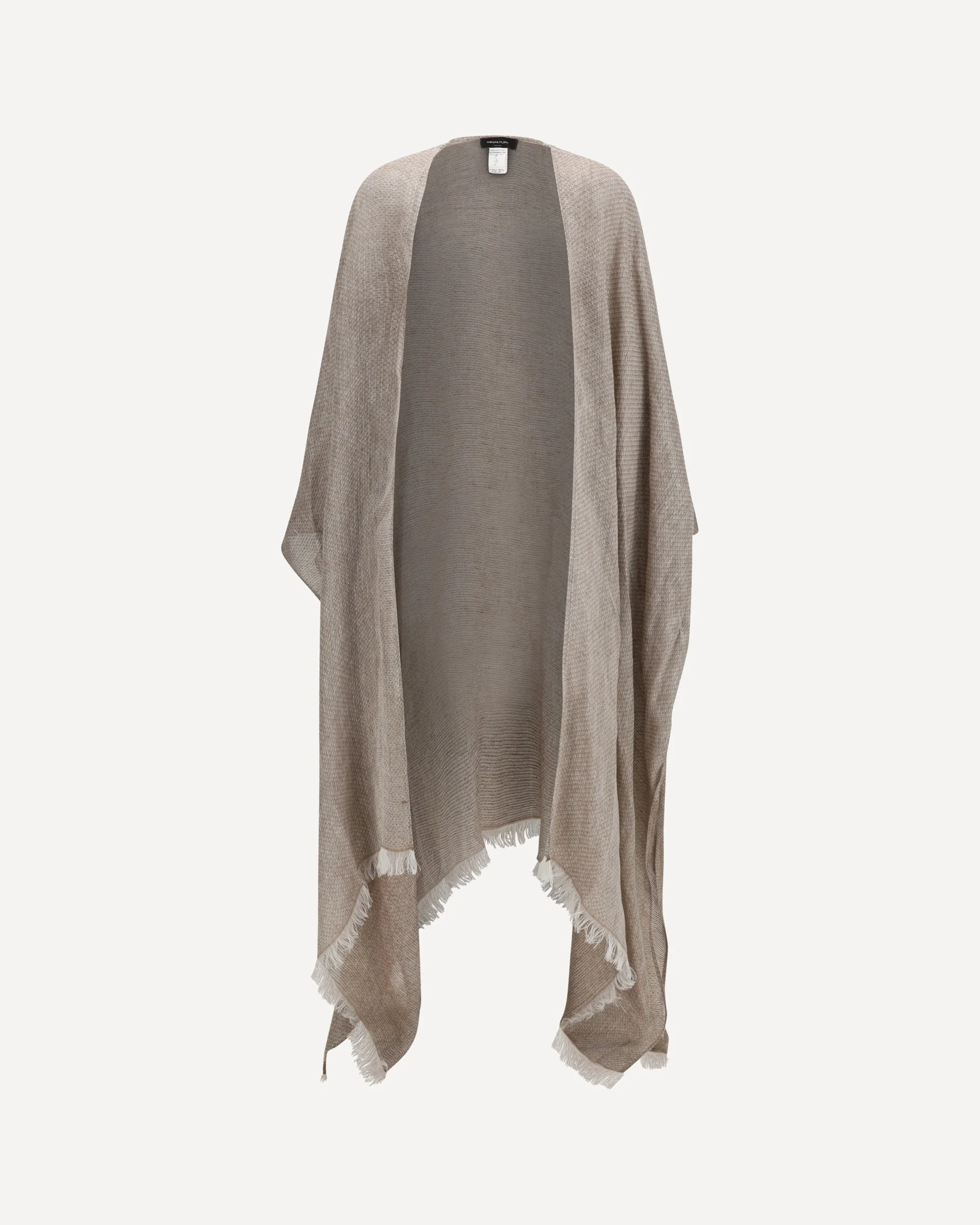 The frayed linen Cape by Fabiana Filippi stands out for a light silhouette that interprets knitwear with natural elegance. The linen knitwear model by Fabiana Filippi features an open front construction that enhances the fluidity of the silhouette. Frayed edges introduce a textured detail that enriches the design. The frayed linen knitwear by Fabiana Filippi completes the garment with a balance between essential style and contemporary character. DETAILS - Sku: SAD276A948M046_1268 - Season: SS26 - Fit: Regular - Composition: GENERAL 100% Linen - MADE IN ITALY