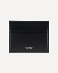 Leather Card Holder by Ferragamo, card slots on front and back, iconic brand monogram pressure-stamped on front, smooth leather design. DETAILS sku 772114_001 composition: CALF LEATHER BOS TAURUS 100% color group: BLACK gender: MAN season: SS25 size chart: UNI category name: WALLETS