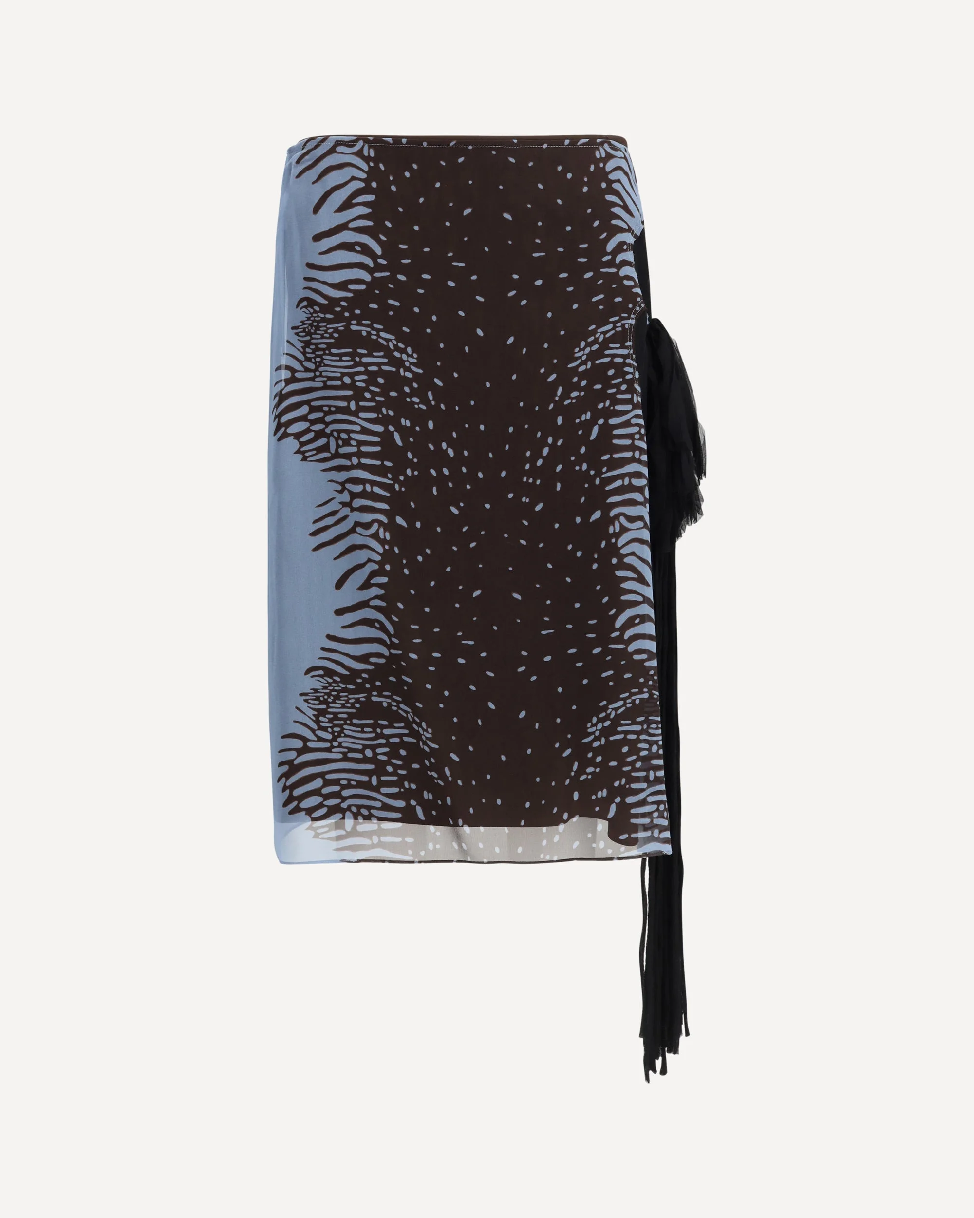 The Flower Skirt by Ferragamo is made of silk-blend georgette, characterized by clean lines and a contrasting animal print placed along the sides. The model features a flower-shaped inlay on the left side, with silk petals and long tubular pistils that create a free-moving fringe. The side closure with an invisible zip maintains a clean design and a regular fit. An elegant skirt, suitable for formal outfits, events, and special occasions. DETAILS - Sku: 793912_001 - Season: SS26 - Fit: Regular - Composition: GENERAL 100% Silk - MADE IN ITALY