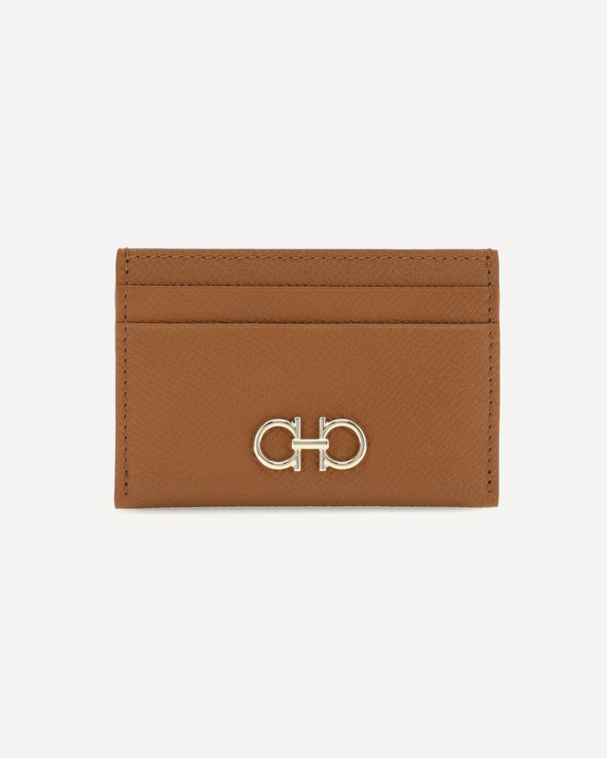 The Gancini Card Holder by Ferragamo is compact and versatile, ideal for compact bags and functional space management. Crafted from hammered calfskin, it is decorated with a gold-finish Gancini ornament on the front, adding an elegant and distinctive touch to the design, perfect for an easy chic style. DETAILS - Sku: 789863_060 - Season: SS26 - Dimension: 10x7 - Composition: GENERAL 100% Calf Leather Bos Taurus - MADE IN ITALY
