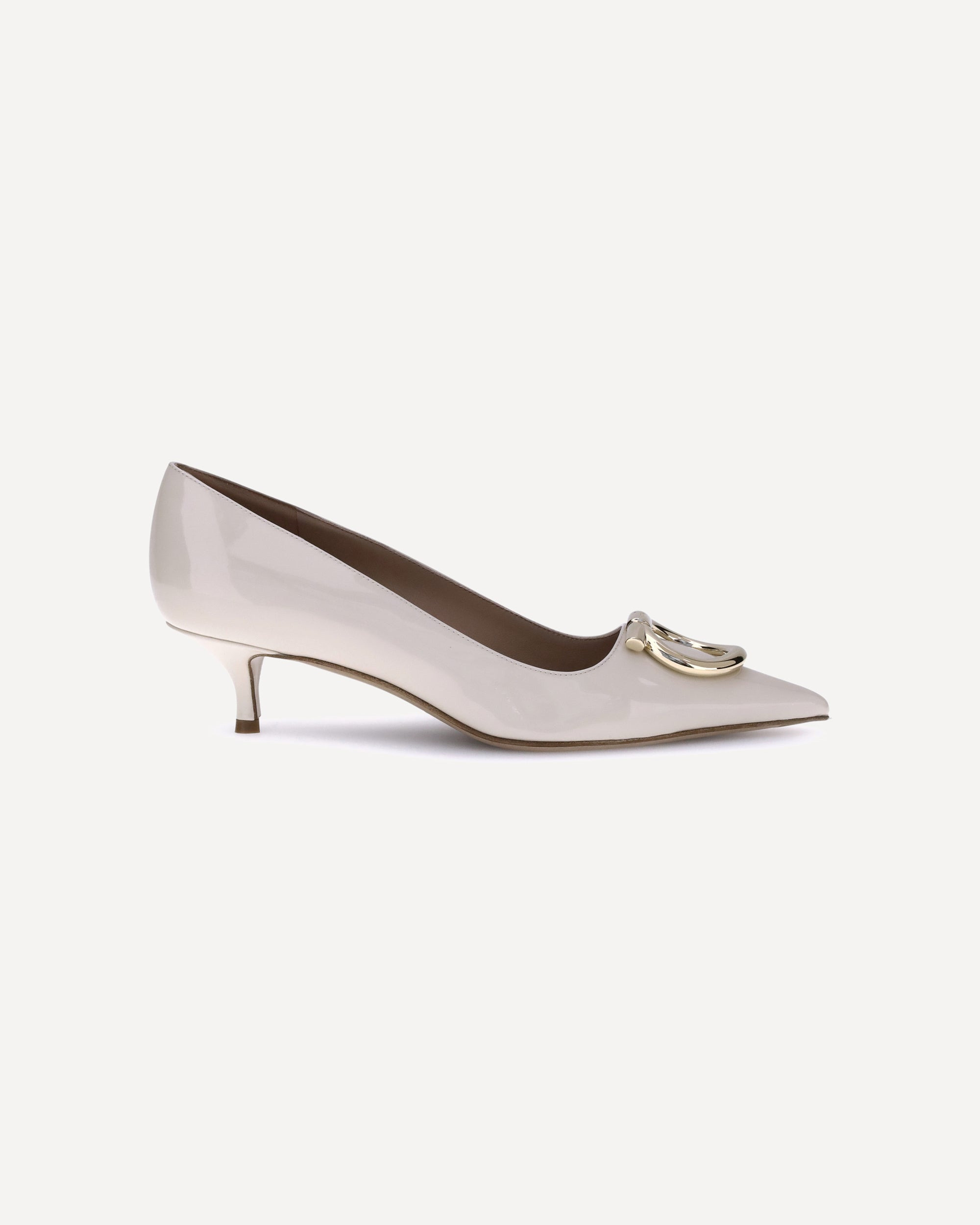 Ferragamo's Gancini Pumps embody sophisticated and timeless elegance. Featuring a tapered toe and a slim kitten heel covered in tone-on-tone, they feature the iconic Gancini ornament in a maxi version with a gold finish. The gently rounded neckline slims the silhouette, making them perfect from day to evening. DETAILS - Sku: 784811_006 - Season: AW25 - Composition: GENERAL 100% Calf Leather Bos Taurus - MADE IN ITALY