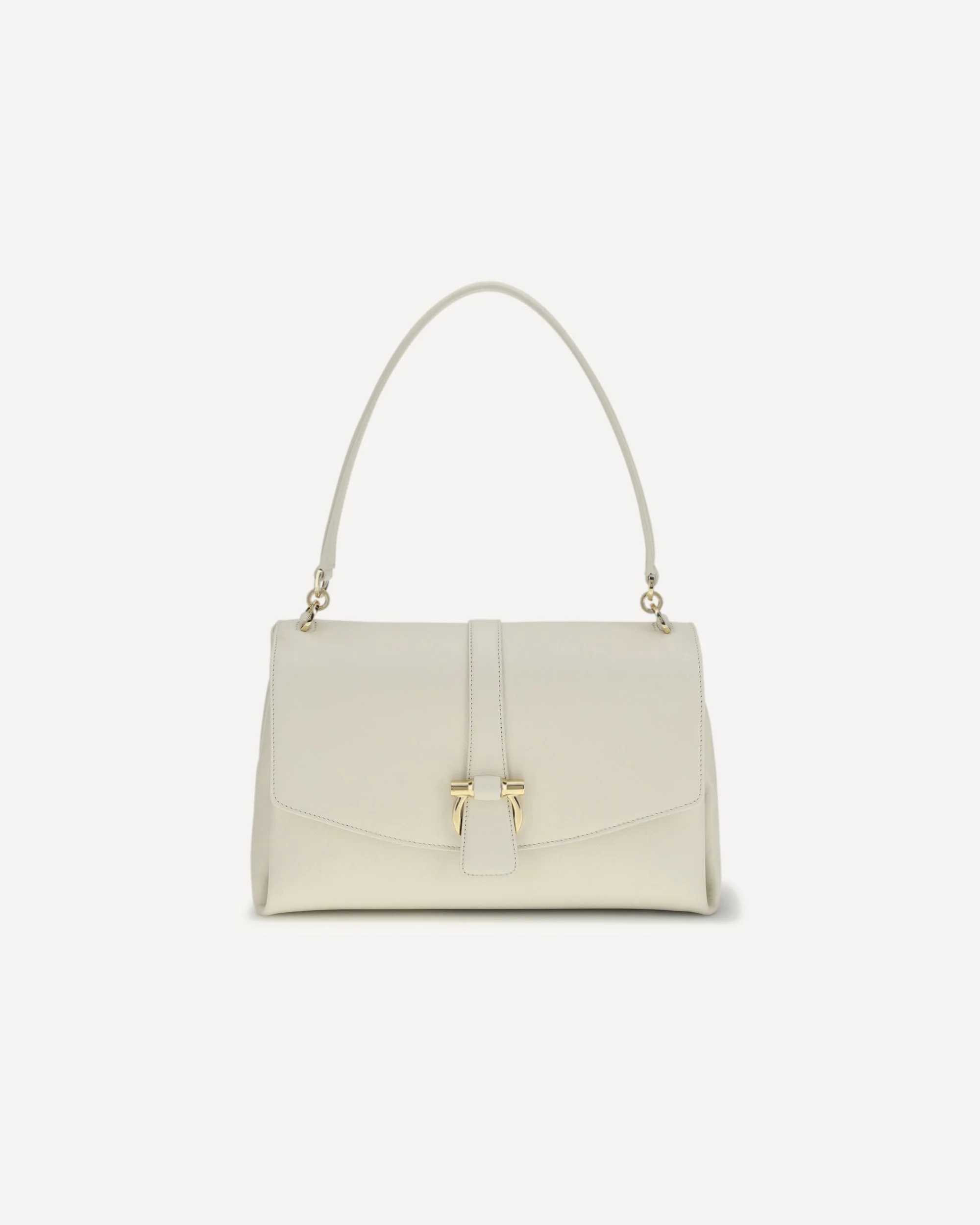 The leather Shoulder Bag by Ferragamo combining classic inspiration and contemporary style. The semi-rigid structure is softened by voluminous waves reminiscent of the shape of the Florentine lily. A wide leather shoulder strap slips into a gold hook on the front flap, an iconic touch that matches the gold finishes of the medium-length shoulder bag. DETAILS - Sku: 791195_003 - Season: SS26 - Dimension: 27x20x10 - Composition: GENERAL 100% Calf Leather Bos Taurus - MADE IN ITALY