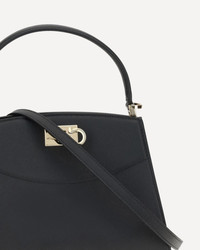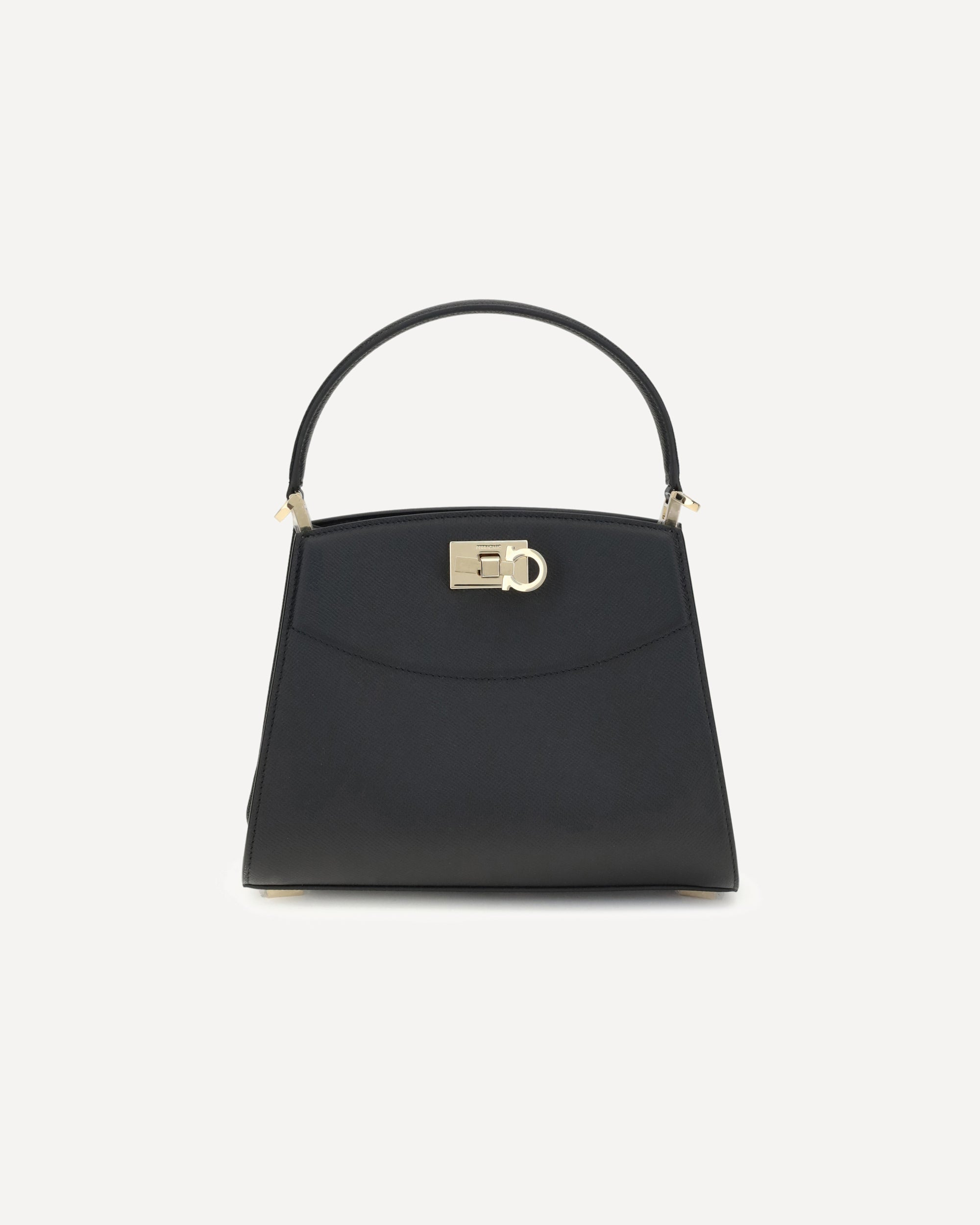 Ferragamo's Studio Box Bag combines structured elegance and iconic details of the Maison. With trapezoid lines and a ladylike allure, it is embellished with rounded stitching on the front and the Gancini slider closure, the brand's distinctive symbol. The lined interior, organized into two compartments, offers functionality and organization. The semi-rigid handle and adjustable, removable shoulder strap allow it to be carried either by hand or over the shoulder, for a versatile and sophisticated style. DETAILS - Sku: 786122_002 - Season: AW25 - Dimension: 24.5x24.5x12 - Composition: GENERAL 100% Calf Leather Bos Taurus - MADE IN ITALY