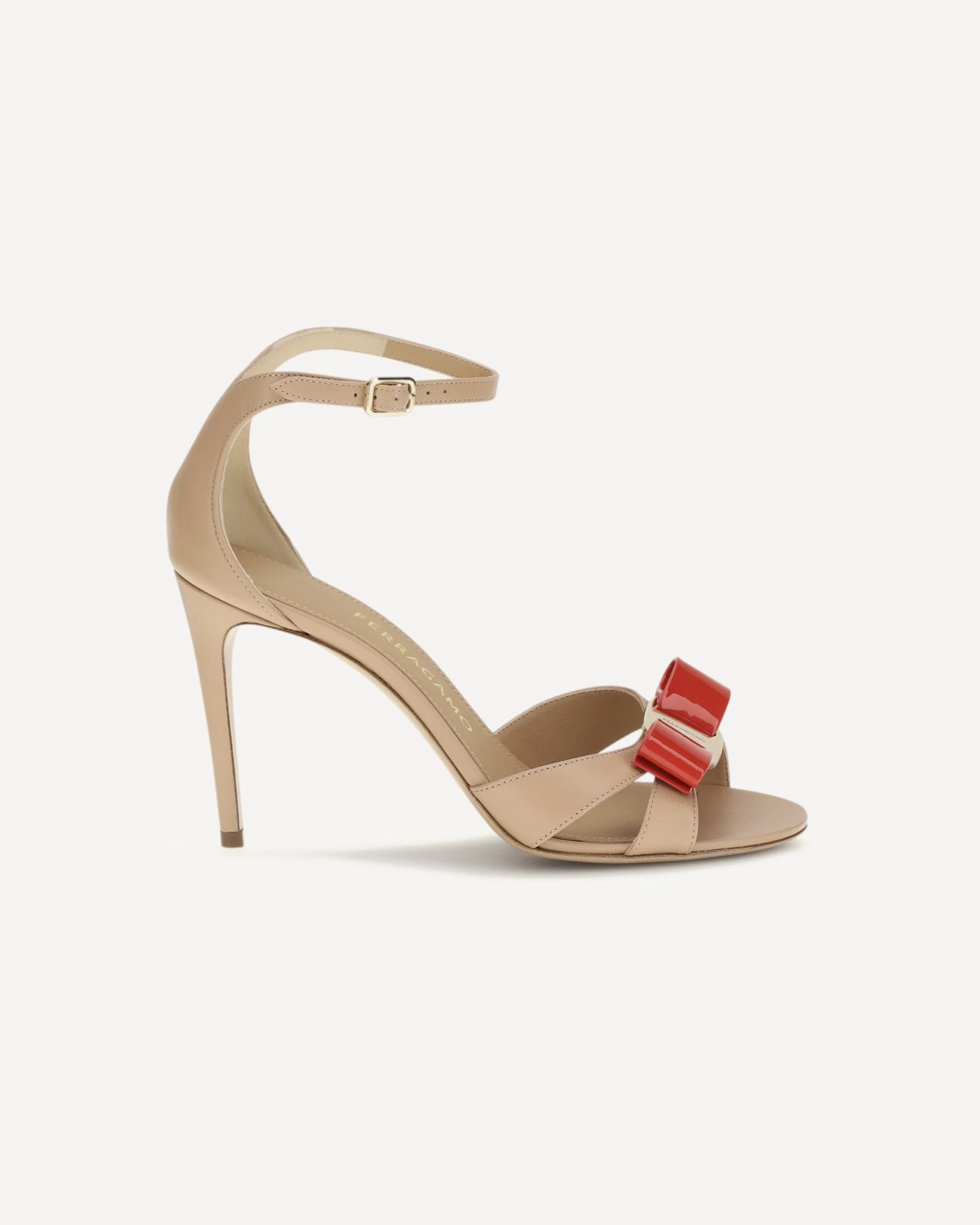 The Vara Bow Sandals by Ferragamo offer a sensual and sophisticated silhouette with a casual touch. The thin straps at the toe are embellished with contrasting patent Vara bows, while the ankle straps, with a V-shape at the heel, add a distinctive and sensual element. The slim, color-coordinated heel completes the elegant, minimalist design, making these sandals ideal for any special occasion. DETAILS - Sku: 791391_002 - Season: SS26 - Composition: GENERAL 100% Calf Leather Bos Taurus - MADE IN ITALY