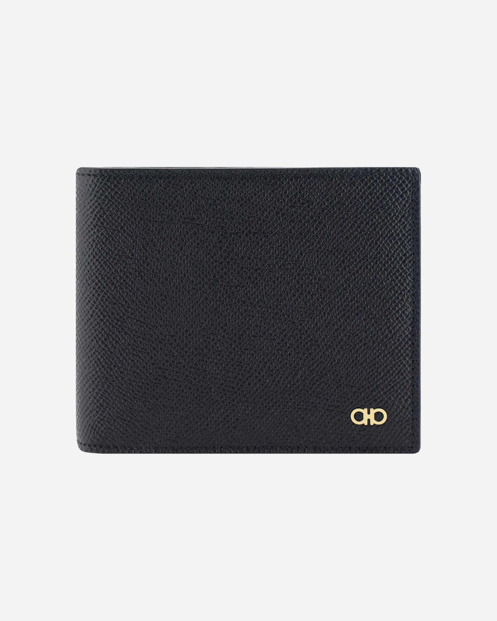 Calfskin Wallet by Ferragamo, billfold model, grained leather design, banknote compartment, interior card slot, iconic brand monogram press-stamped on interior panel, three-dimensional iconic brand Gancini logo plaque applied to front. DETAILS sku 775650_001 color group: BLACK gender: MAN season: AW24 size chart: UNI category name: WALLETS dimensions: 10 x 13 cm