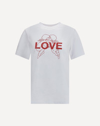 The Kissing Angels Love Print Regular T-Shirt by Fiorucci in white reimagines the brand’s iconic Kissing Angels graphic, first seen on collectible Panini cards, layered with bold Love lettering and the Fiorucci logo. Crafted from lightweight cotton jersey, it features a regular fit, short sleeves, and a crewneck, blending comfort with a playful, cultural statement. DETAILS - Sku: W25FWJTS001CJ01WH03_WHITE - Season: AW25 - Fit: Regular - Composition: GENERAL 100% Cotton - MADE IN ITALY