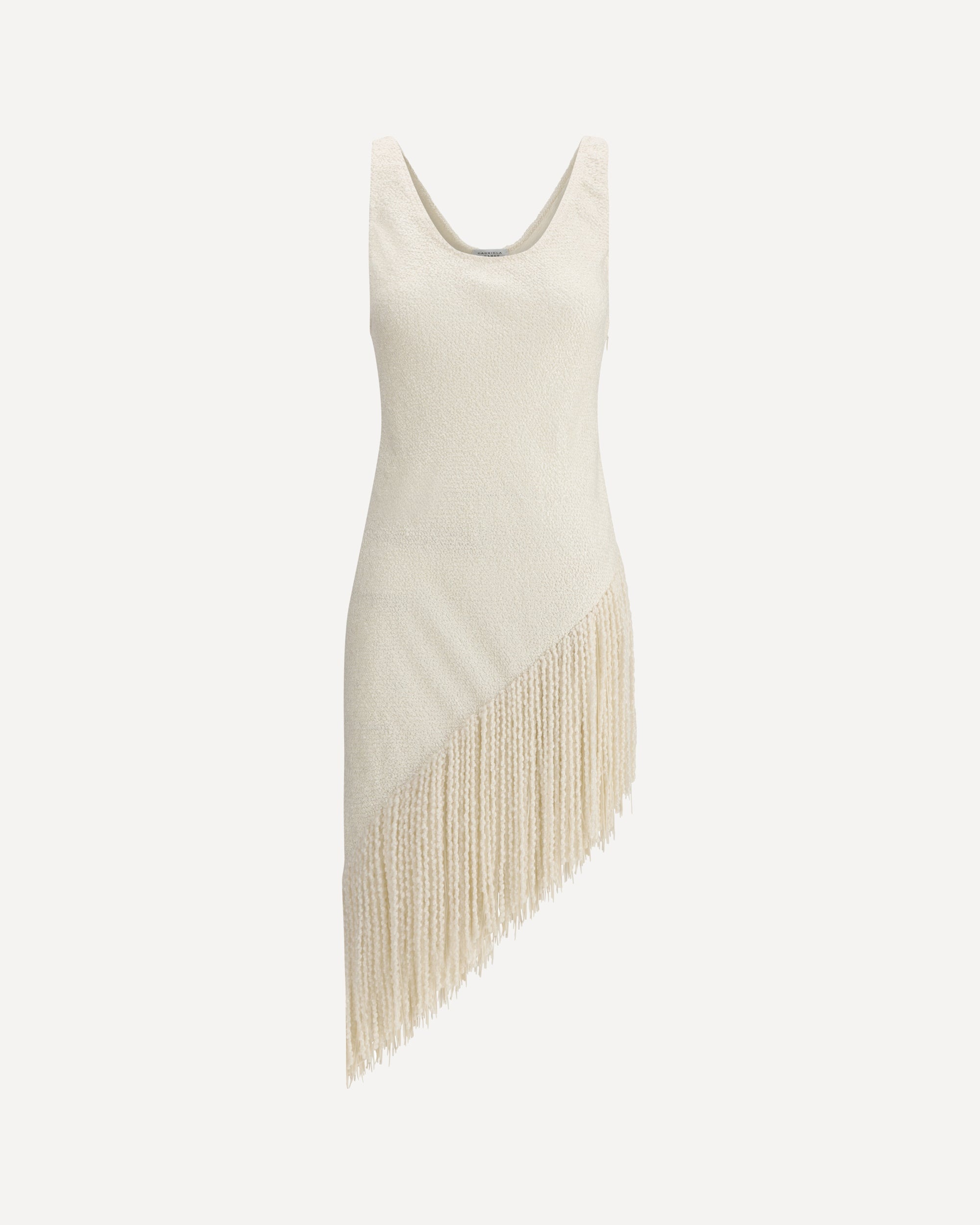 Gabriela Hearst's Ursin Sleeveless Top is made of ivory-colored summer silk boucle. Elegant and lightweight, it is embellished with an asymmetrical hand-embroidered fringe in cashmere and silk, a detail that enhances the garment's craftsmanship and refined character. DETAILS - Sku: 2251109S129_IVR - Season: SS25 - Fit: Regular - Composition: GENERAL 100% Silk - MADE IN ITALY