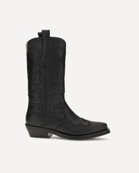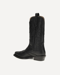 Ganni's embroidered Western Boots are a mid-calf style featuring a pointed toe and embroidered details that enhance its distinctive style. Practical pull tabs and a low, angled heel complete the design, perfect for a contemporary look with a Western flavor. DETAILS - Sku: S3110_004 - Season: AW25 - Composition: GENERAL 45% Recycled Leather 20% Recycled Polyester 20% Polyurethane 15% Polyester - MADE IN PORTUGAL