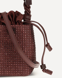 The mini Bou Buckle Bag by Ganni with Rhinestones is a little gem of style, entirely studded with tone-on-tone rhinestones. It features a braided top handle with knot detail and an adjustable, removable shoulder strap that adds to its versatility. Completing the design is an internal drawstring clutch bag, embossed logo on the back and a flat pocket for a compact yet character-filled accessory. DETAILS - Sku: B2100043_436 - Season: SS26 - Dimension: 10x10x19 - Composition: GENERAL 100% Recycled Polyester - MADE IN HONG KONG
