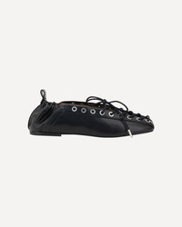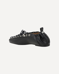BLACK OLEATEX EYELETS LACE UP BALLERINAS