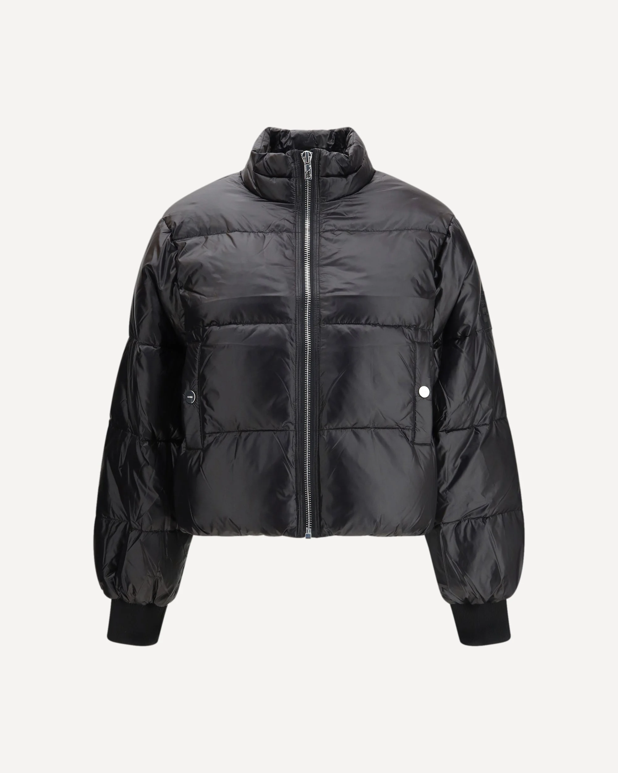 The shiny nylon short Puffer Jacket By Ganni delivers a modern, dynamic attitude through its compact and functional silhouette. The high collar and front zip closure create a clean protective structure, while the ribbed cuffs add a neat finish. Front pockets enhance everyday practicality, shaping a Puffer that reflects the urban, energetic spirit By Ganni. DETAILS - Sku: W0957_099 - Season: AW25 - Fit: Slim - Composition: GENERAL 100% Nylon - MADE IN CHINA