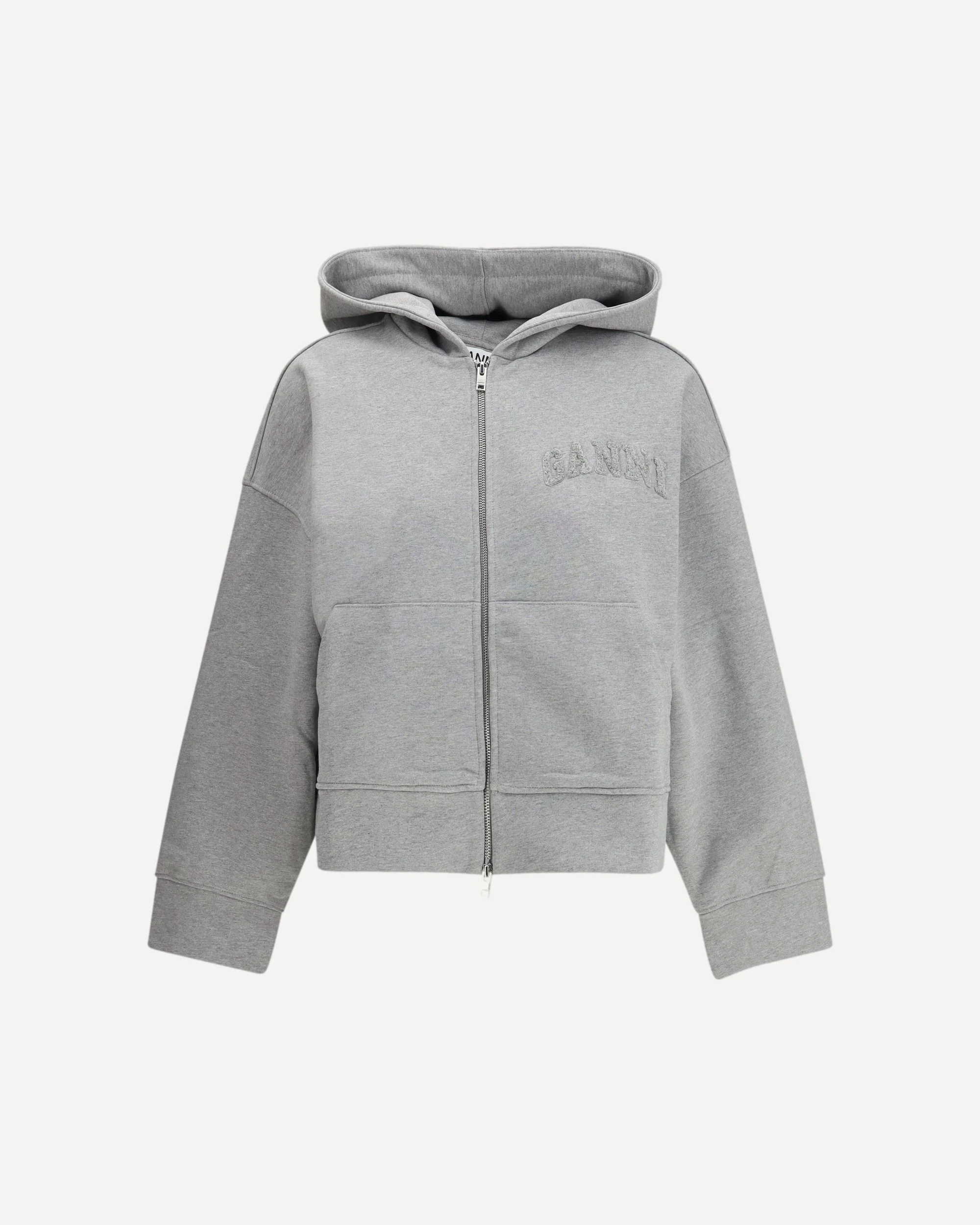 The Two-way Zip Hoodie By Ganni, crafted from organic cotton, captures the brand’s casual and contemporary spirit. The hood and two-way front zip closure provide adaptable wear, while long sleeves with ribbed cuffs add a neat finish. Two front pockets and the Ganni logo deliver functional and recognisable detailing, shaping a Hoodie that reflects the modern ease By Ganni. DETAILS - Sku: T4328_921 - Season: AW25 - Fit: Oversize - Composition: GENERAL 100% Cotton - MADE IN PORTUGAL