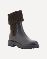 Leather Ankle Boots by Gianvito Rossi featuring a round toe, an ankle-length design, stretch fabric side bands, a matte leather design, a knurled sole, and a ribbed fabric detail at the top. DETAILS sku G7292920GOMCKH_MOMO composition: CALF LEATHER BOS TAURUS 100% RUBBER 100% color group: BLACK gender: WOMAN season: AW24 size chart: SHOES IT category name: BOOTS