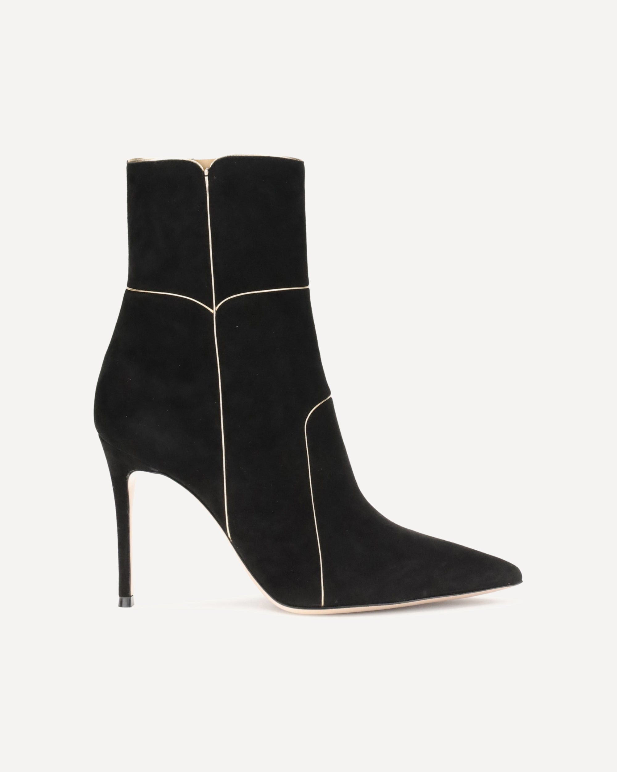 Gianvito Rossi's Suede Ankle Boots combine elegance and character in a refined design. With an above-ankle height and a tapered silhouette, they are enhanced by a stiletto heel and a figure-slimming almond toe. Metallic leather details add a bright, contemporary touch, perfect for completing sophisticated daytime and evening looks. DETAILS - Sku: G7299395RICCNK_NEME - Season: AW25 - MADE IN ITALY