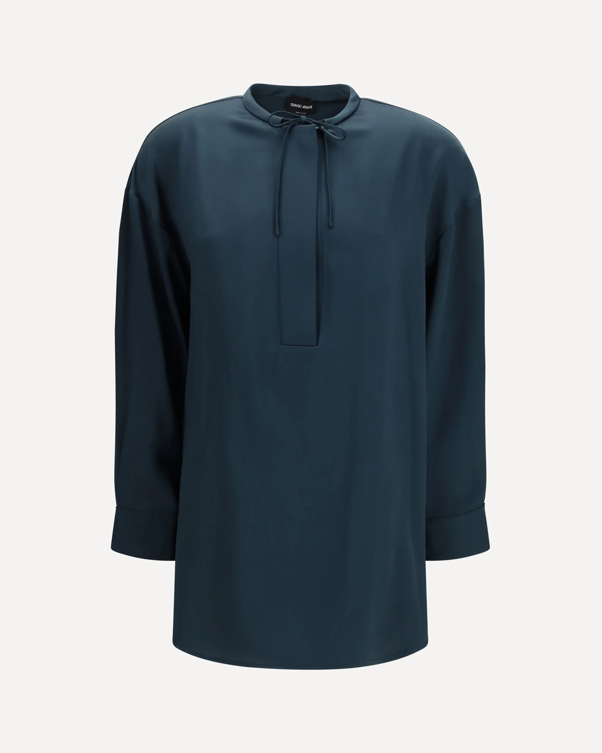The lavalliere Blouse by Giorgio Armani stands out for its sophisticated and timeless elegance. It features a round neckline enhanced by a refined lavalliere knot detail that adds movement and femininity to the design. Long sleeves and a straight hem create clean, essential lines, while tone-on-tone stitching highlights the maison’s signature tailoring and attention to detail. A versatile and refined piece, perfect for elegant and contemporary looks. DETAILS - Sku: GW002564TE10101_U7331 - Season: SS26 - Fit: Regular - Composition: GENERAL 100% Silk - MADE IN ITALY