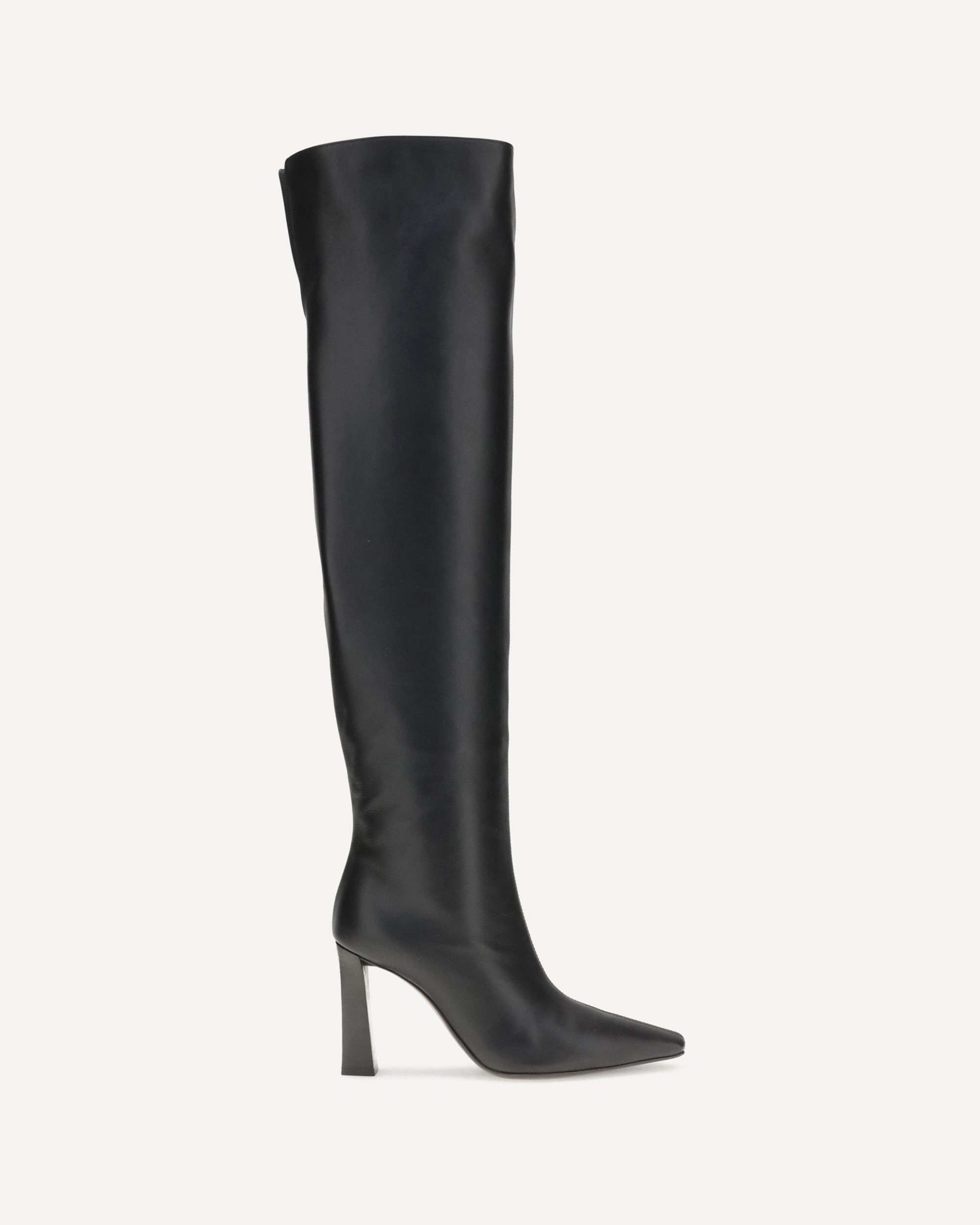 Giuseppe Zanotti's extra high leather Boots combine elegance and grit. Made of soft leather, they feature an almond toe and a squared heel for stability and style. The above-the-knee height slims the leg, while the cutaway at the back adds a functional and sophisticated detail. A bold accessory, perfect for completing bold, contemporary looks. DETAILS - Sku: I580009_001 - Season: AW25 - Composition: GENERAL 100% Leather - MADE IN ITALY