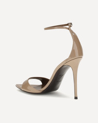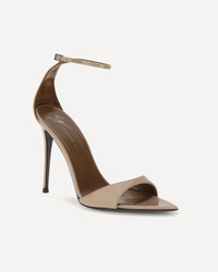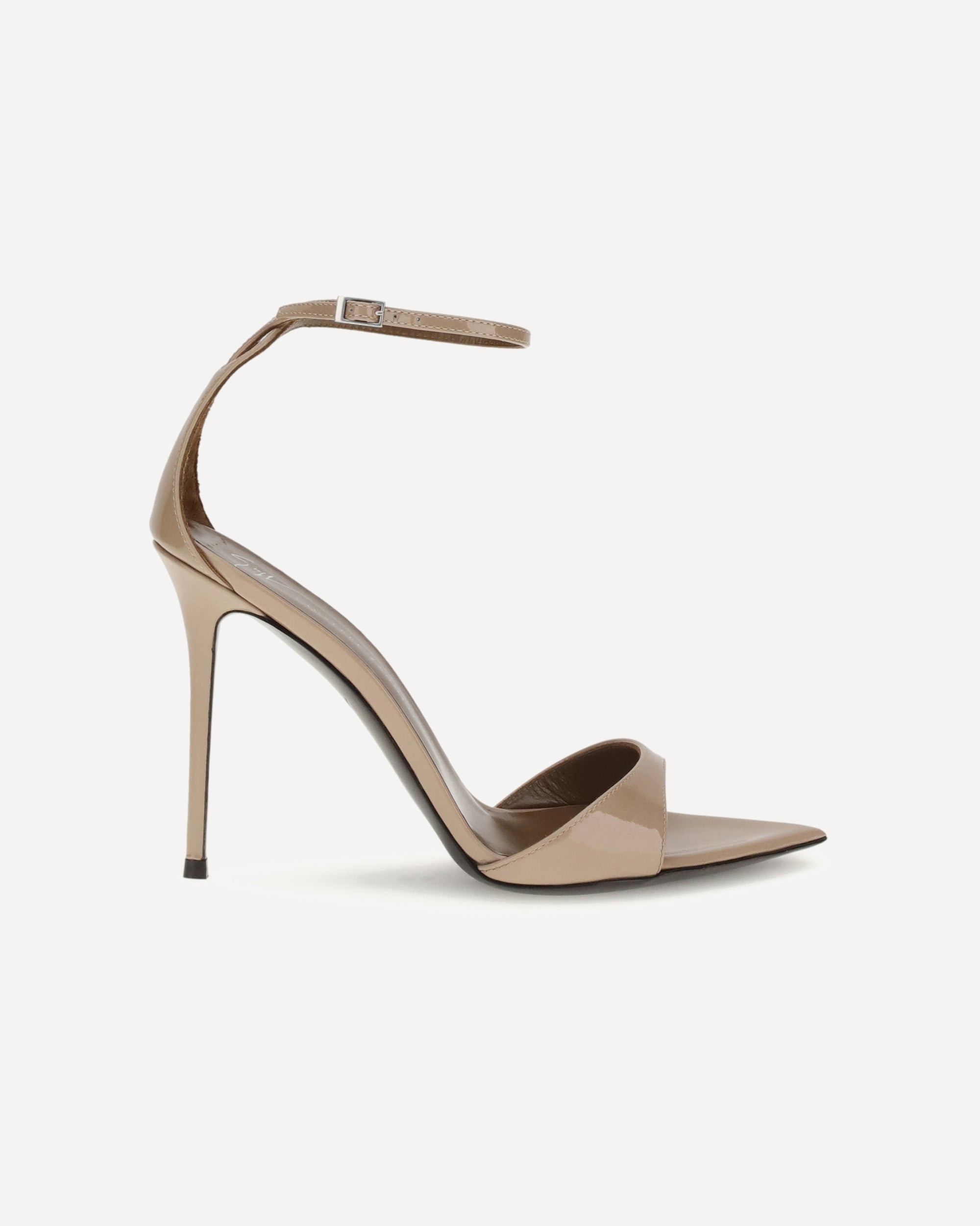 Giuseppe Zanotti's Intriigo Strap Sandals combine sensuality and modernity in a bold design. Crafted from patent leather, they feature a pointed open-toe silhouette that enhances the shape of the foot. The silver-tone metal strap lends a bright, contemporary touch, while the stiletto heel elegantly slims. Completed with a logo-embossed insole, these sandals are perfect for sophisticated evening looks with a bold style. DETAILS - Sku: I400005_014 - Season: AW25 - Composition: GENERAL 100% Leather - MADE IN ITALY