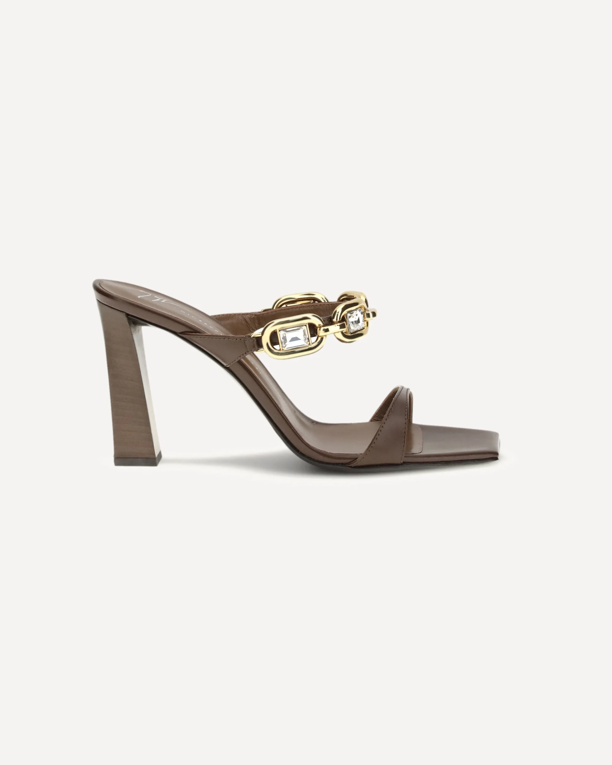 The Muse Mules Sandals by Giuseppe Zanotti are the perfect balance of elegance and modernity, with a flowing silhouette and a refined touch of gold, embellished with a crystal accent. The clean lines and sophisticated finish make them modern and muted yet glamorous, ideal for brightening up any look. They feature leather lining, a square toe and gold-tone hardware for a touch of understated yet instantly recognizable luxury. DETAILS - Sku: E600020_002 - Season: SS26 - Composition: GENERAL 100% Calf Leather Bos Taurus - MADE IN ITALY