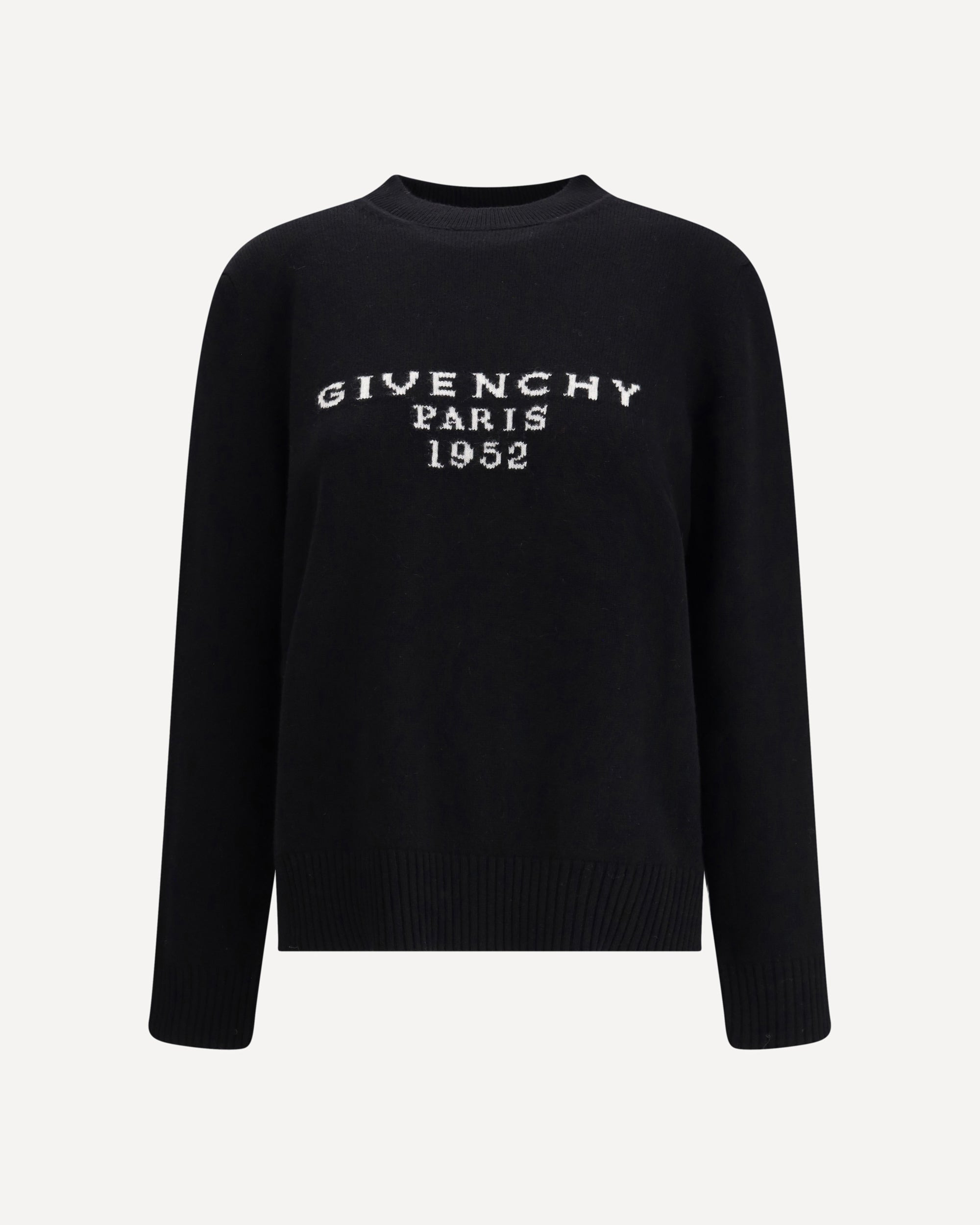 Givenchy's crew neck Sweater is a long-sleeved sweater made from a soft blend of wool and cashmere. The essential design is enhanced by the "GIVENCHY Paris 1952" jacquard on the front, which pays homage to the history of the Maison. Ribbed collar, hem and cuffs complete the garment with a touch of understated elegance. DETAILS - Sku: BW90VD4ZSN_001 - Season: AW25 - Fit: Oversize - Composition: GENERAL 70% Wool 30% Kashmir/capra Hircus - MADE IN ITALY