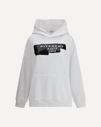 Givenchy's gauzy fabric long-sleeved hoodie with hood and pouch pocket. GIVENCHY Tape 3D print on front, ribbed hem and cuffs for a distinctive modern look. DETAILS - Sku: BWJ04TP78U_100 - Season: AW25 - Fit: Oversize - Composition: GENERAL 100% Cotton - MADE IN PORTUGAL