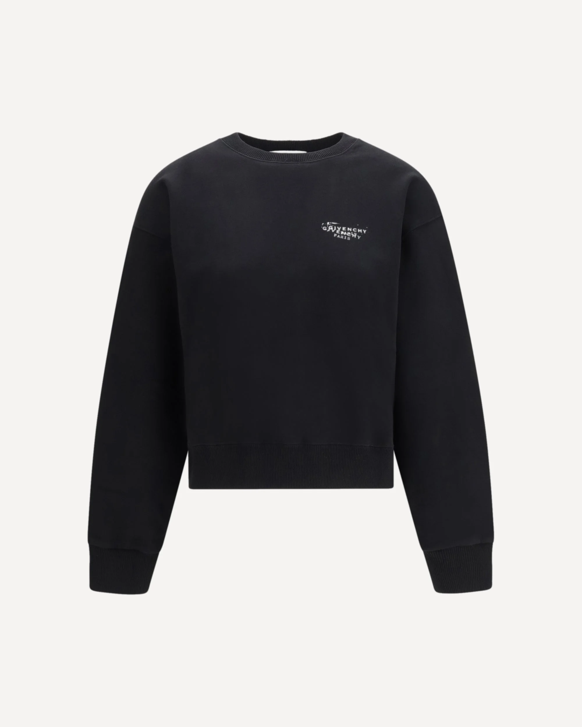 The logo brushed fabric Sweatshirt by Givenchy is an essential piece with a contemporary feel. Crafted from soft brushed fabric, it features long sleeves and a crew neck for everyday comfort. The small GIVENCHY Stamp print on the chest and larger print on the back add a distinctive graphic touch, while the ribbed collar, hem, and cuffs complete the design with a refined and versatile fit. DETAILS - Sku: BWJ04UP7A7_001 - Season: SS26 - Fit: Regular - Composition: GENERAL 100% Cotton - MADE IN PORTUGAL