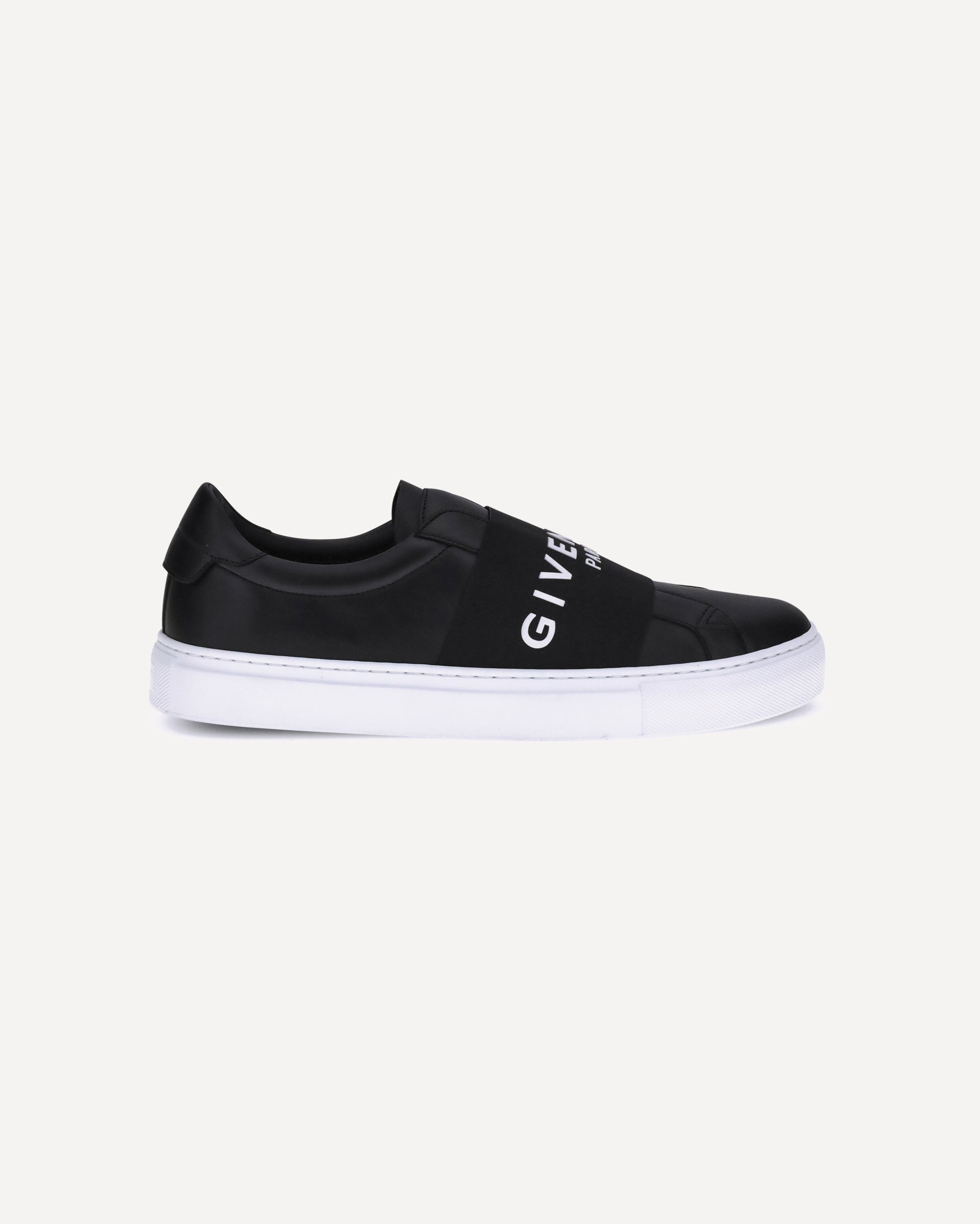 Givenchy's Urban Street Sneakers feature a modern, minimalist design. Featuring a wide black stretch band with the signature white GIVENCHY PARIS on the front, they offer comfort and style, complemented by a durable and functional rubber sole. DETAILS - Sku: BH00AXH1W4_001 - Season: AW25 - Composition: UPPER 100% Calf Leather Bos Taurus SOLE 100% Rubber - MADE IN PORTUGAL