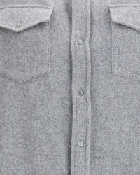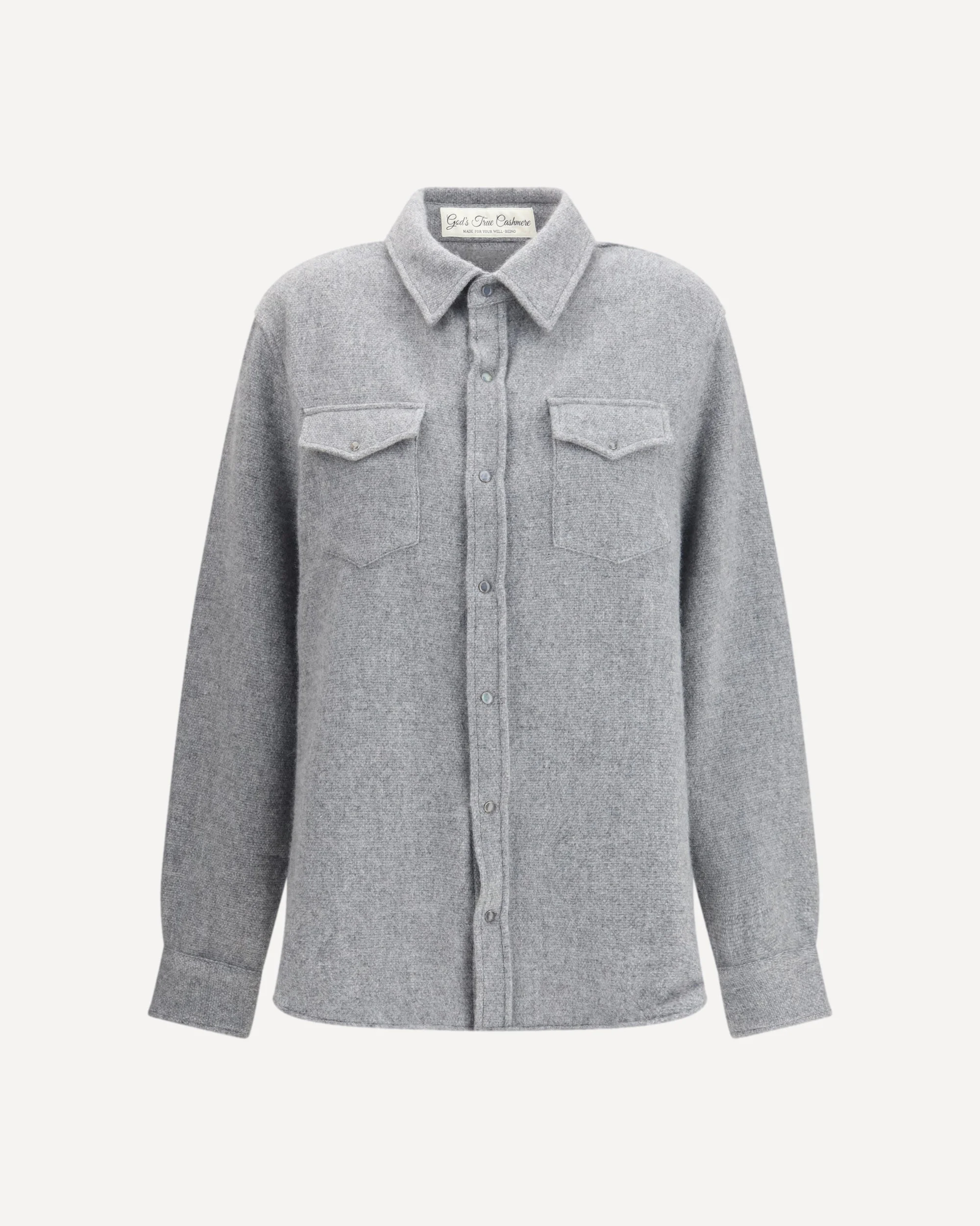 The cashmere Shirt by God's True Cashmere is a luxurious garment that combines elegance and comfort. Made from pure cashmere, it offers a uniquely soft feel against the skin. The classic collar and long sleeves with adjustable button cuffs lend a sophisticated touch, while the front button fastening adds a functional detail. The two patch pockets with flap and buttons on the chest are practical and eye-catching in design. The asymmetrical rounded hem gives the garment a dynamic and modern silhouette, making it versatile both as a shirt and as a lightweight jacket, perfect for any occasion. DETAILS - Sku: GTC0056WP_GREY - Season: AW25 - Fit: Regular - Composition: GENERAL 100% Kashmir/capra Hircus - MADE IN ITALY