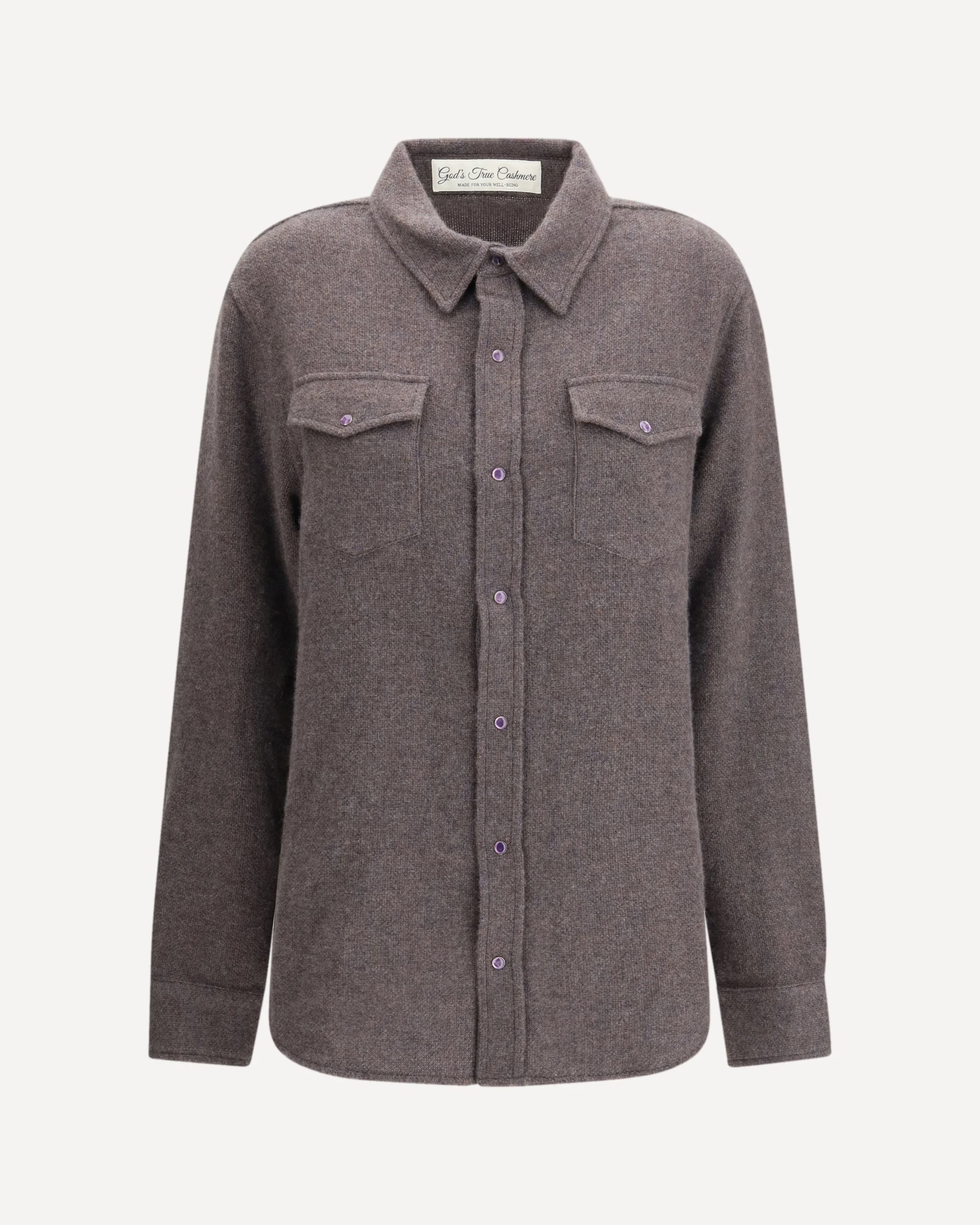 The cashmere Shirt by God's True Cashmere is a luxurious garment that combines elegance and comfort. Made from pure cashmere, it offers a uniquely soft feel against the skin. The classic collar and long sleeves with adjustable button cuffs add a sophisticated touch, while the front button fastening adds a functional detail. The two patch pockets with flap and buttons on the chest are practical and eye-catching in design. The asymmetrical rounded hem gives the garment a dynamic and modern silhouette, making it versatile both as a shirt and as a lightweight jacket, perfect for any occasion. DETAILS - Sku: FW25U1111CASESP_ESP - Season: AW25 - Fit: Regular - Composition: GENERAL 100% Kashmir/capra Hircus - MADE IN ITALY