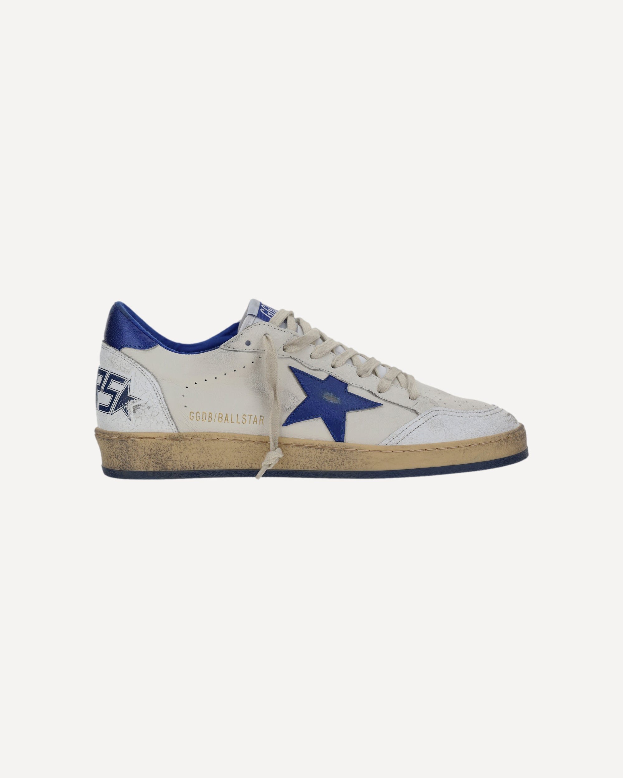Calfskin Ball Star Sneakers by Golden Goose, lace-up front closure, iconic star on contrasting side panel, round toe, flat sole, brand logo press-stamped on outer side panel, brand logo press-stamped on front tongue, iconic signature press-stamped on heel. DETAILS sku GMF00117F002198_10327 composition : CALF LEATHER BOS TAURUS 100% RUBBER 100% color group : WHITE gender : MAN season : AW23 size chart : SHOES MAN IT category name : SNEAKERS