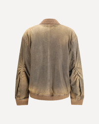 Brown leather biker jacket with a lived-in effect