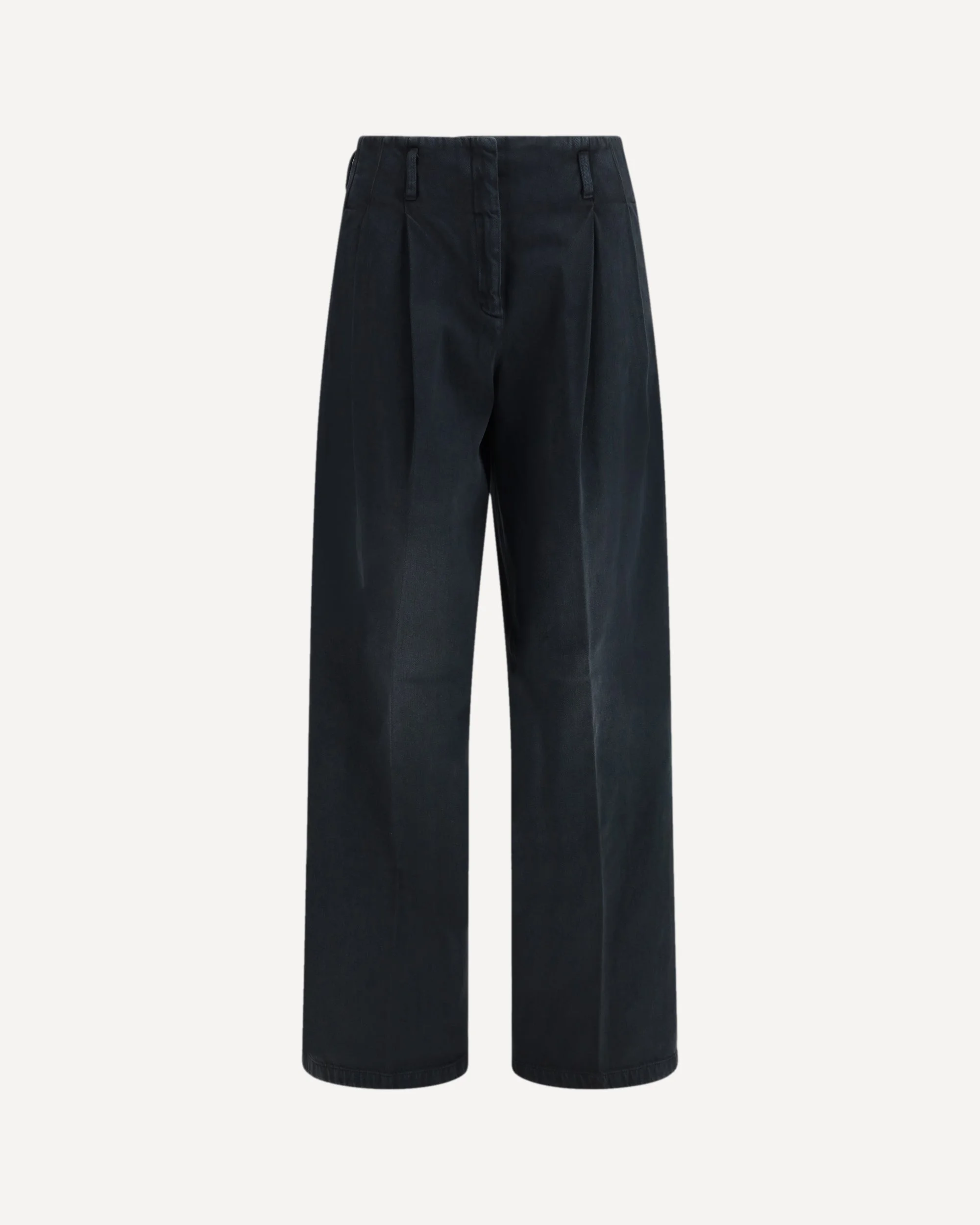 Women's pants in black cotton denim with a lived-in treatment