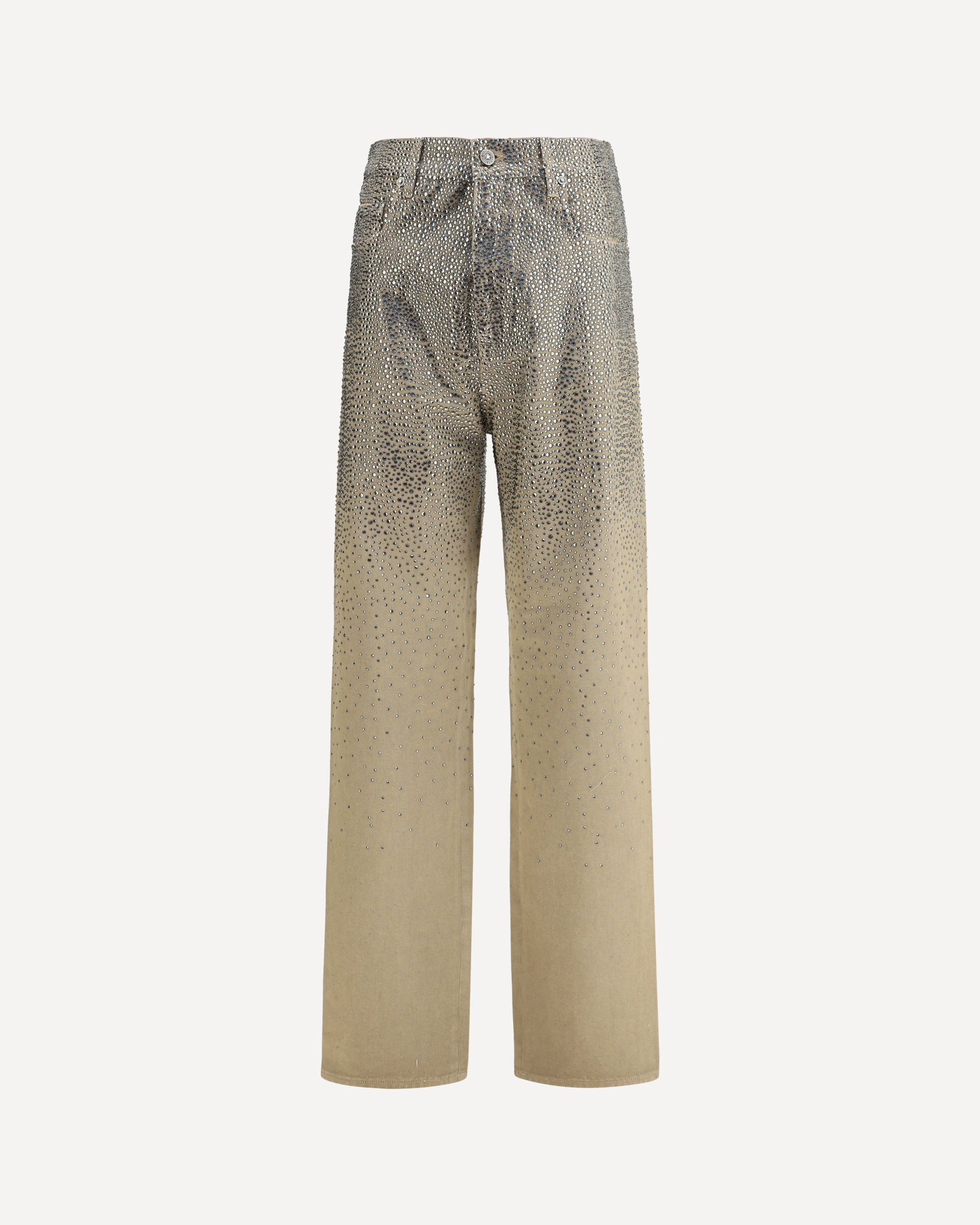 Golden Goose's crystal straight Jeans reinterpret a wardrobe classic with a glamorous twist. Made in the traditional five-pocket style, they feature a front zip-and-button closure and belt loops at the waist. The straight silhouette is enhanced by a shower of all-over rhinestones, giving light and personality to the garment. Perfect for those who want impactful denim with a strong and sophisticated character. DETAILS - Sku: GWP00844P002075_15184 - Season: AW25 - Fit: Regular - Composition: GENERAL 100% Cotton - MADE IN ITALY