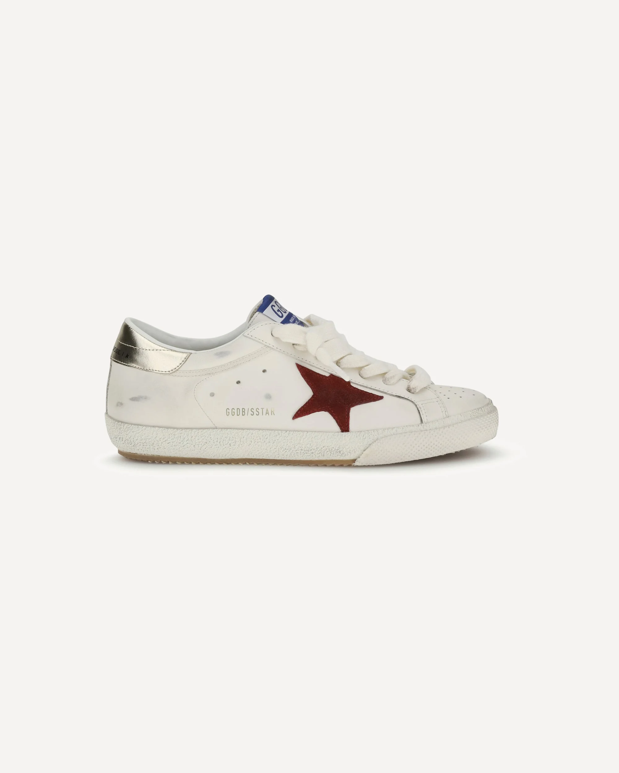 The leather Super Star Sneakers by Golden Goose feature a lace-up front closure and the iconic contrasting star on the side panel. The round toe and flat sole ensure comfort and practicality, while the brand's logo on the outer side panel and front tongue completes the design with a distinctive and recognizable touch. DETAILS - Sku: GMF01003F008137_12378 - Season: SS26 - Composition: UPPER 100% Calf Leather Bos Taurus SOLE 100% Rubber - MADE IN ITALY