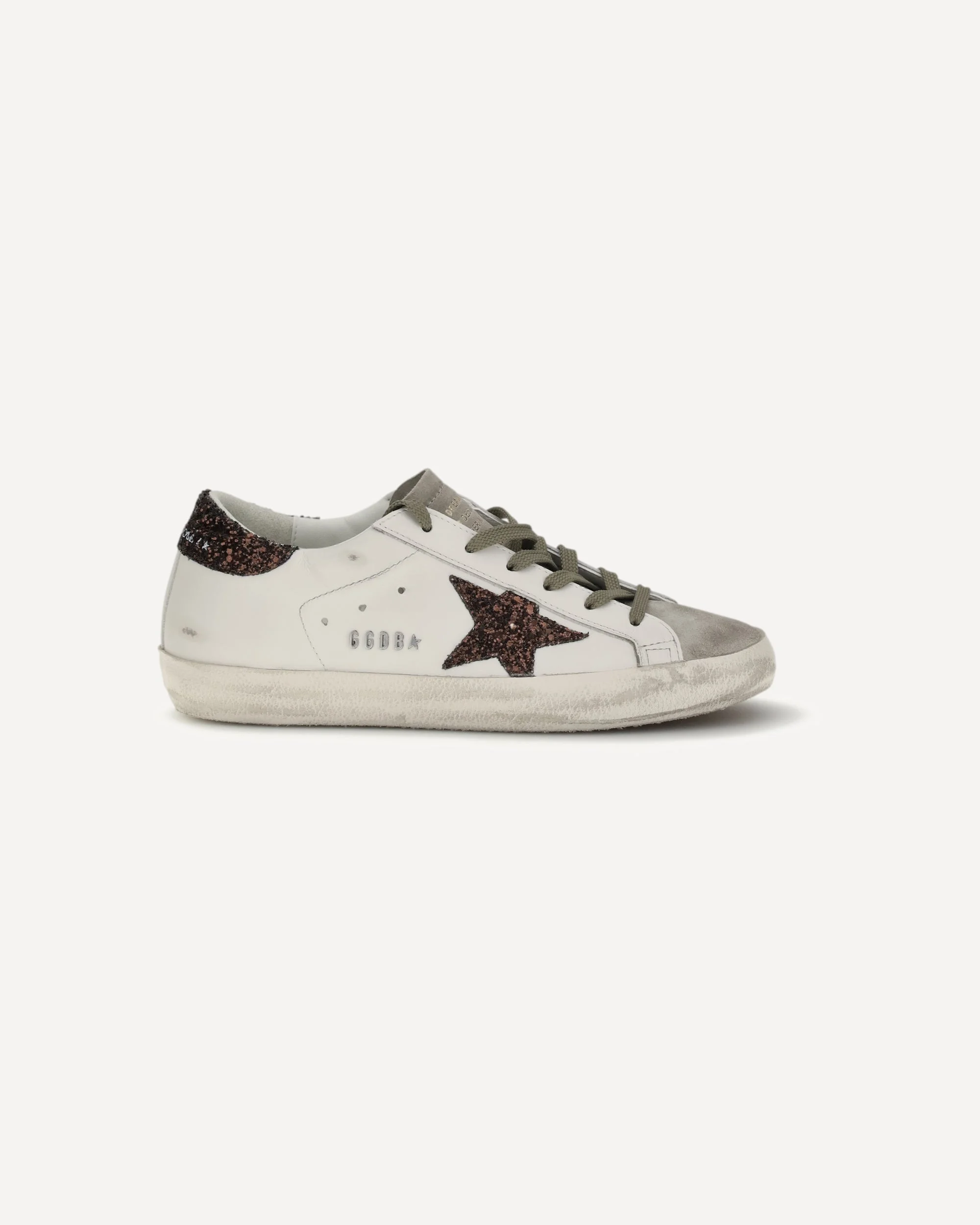 The leather Super Star Sneakers by Golden Goose combine casual and sophisticated style. They feature a lace-up front closure and an iconic contrasting star on the side panel, making them instantly recognizable. The round toe and flat sole offer comfort and versatility, while the brand logo is embossed on both the outer side panel and the front tongue. A pair of shoes that combines distinctive design and practicality for a timeless look. DETAILS - Sku: GWF00101F008122_12386 - Season: SS26 - Composition: UPPER 100% Calf Leather Bos Taurus SOLE 100% Rubber - MADE IN ITALY