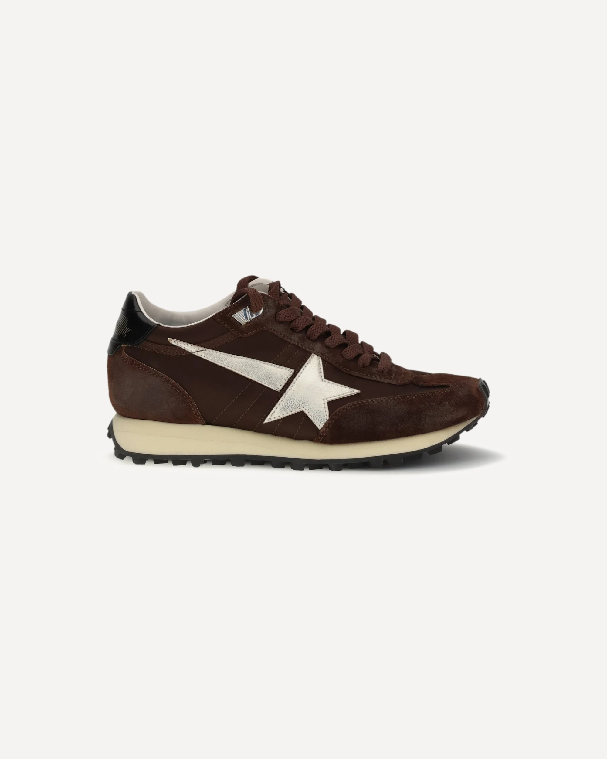 Women's Marathon with burgundy satin upper and platinum leather star