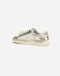 The Stardan Sneakers by Golden Goose are crafted from smooth leather and finished with intentional mottling that recalls the brand's signature vintage aesthetic. They feature a printed logo on the side, a distinctive laminated print on the heel and the iconic star applied on the side. The closure is adjustable via laces, while the padded tongue and ankle provide comfort. Completing the model are the logoed label on the tongue and the printed logo on the inside. DETAILS - Sku: GWF00333F007536_12281 - Season: SS26 - Composition: UPPER 82% Calf Leather Bos Taurus 10% Nylon 5% Polyurethane 3% Polyester SOLE 100% Rubber - MADE IN ITALY
