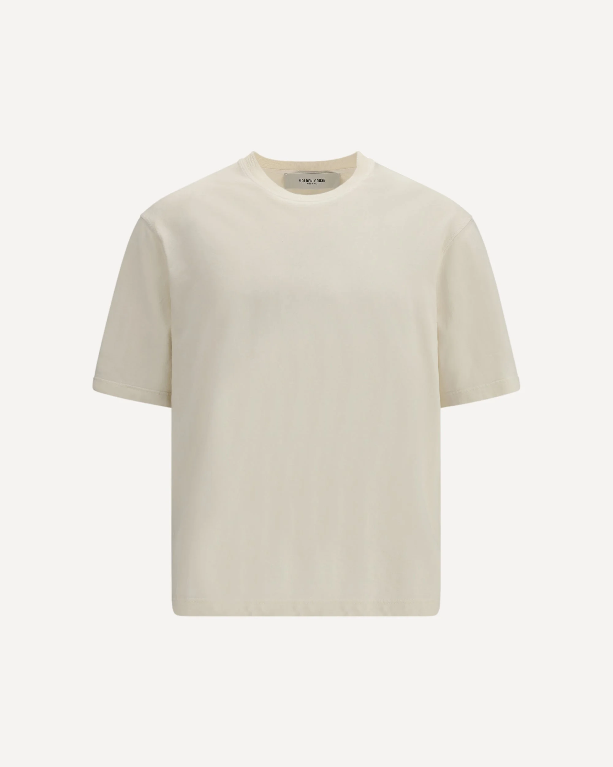 The T-shirt by Golden Goose from the Jersey Capsule captures the brand’s timeless and authentic DNA, designed to be worn day after day, through every moment. Crafted from cotton with a distressed finish, it features a naturally worn-in look with effortless appeal. The standout detail is the embossed reverse Golden logo on the back, paired with the signature double gold star, a hallmark of the brand’s identity. With its relaxed fit and short sleeves, this T-shirt offers comfort, versatility, and understated attitude for everyday wear. DETAILS - Sku: GUP01873P001576_11560 - Season: SS26 - Fit: Regular - Composition: GENERAL 100% Cotton - MADE IN ITALY