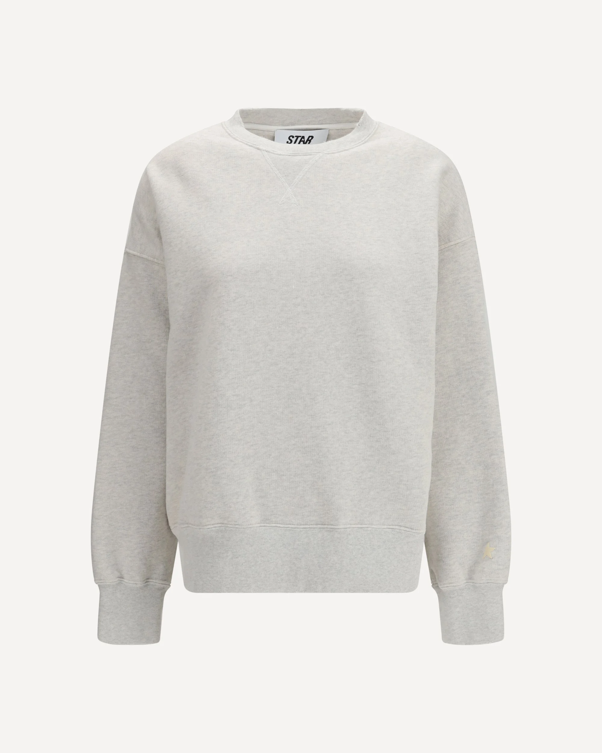 The unisex Star Sweatshirt in cotton by Golden Goose is crafted from double layer cotton with a lived in treatment that enhances its authentic character. It features an oversized fit, a crew neckline with triangle detail and a double star at the back. The Star lettering embroidered with crystals and gold thread, along with the Golden Goose embroidery on the back, completes the design with a signature touch from the Star Collection. DETAILS - Sku: GUP02716P002413_60665 - Season: SS26 - Fit: Regular - Composition: GENERAL 100% Cotton - MADE IN ITALY
