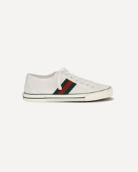 The 1977 Tennis Sneakers by Gucci feature perforated suede trim on the front and are unlined for a lightweight, breathable look. The design is enhanced by the Web ribbon and GG Crossing logo on the back, while the vulcanized rubber sole provides durability and comfort. The low-top model with lace-up closure includes an additional pair of laces, combining classic style and versatility. DETAILS - Sku: 854436FAFS4_9074 - Season: SS26 - Composition: UPPER 100% Cotton SOLE 100% Rubber - MADE IN SPAIN