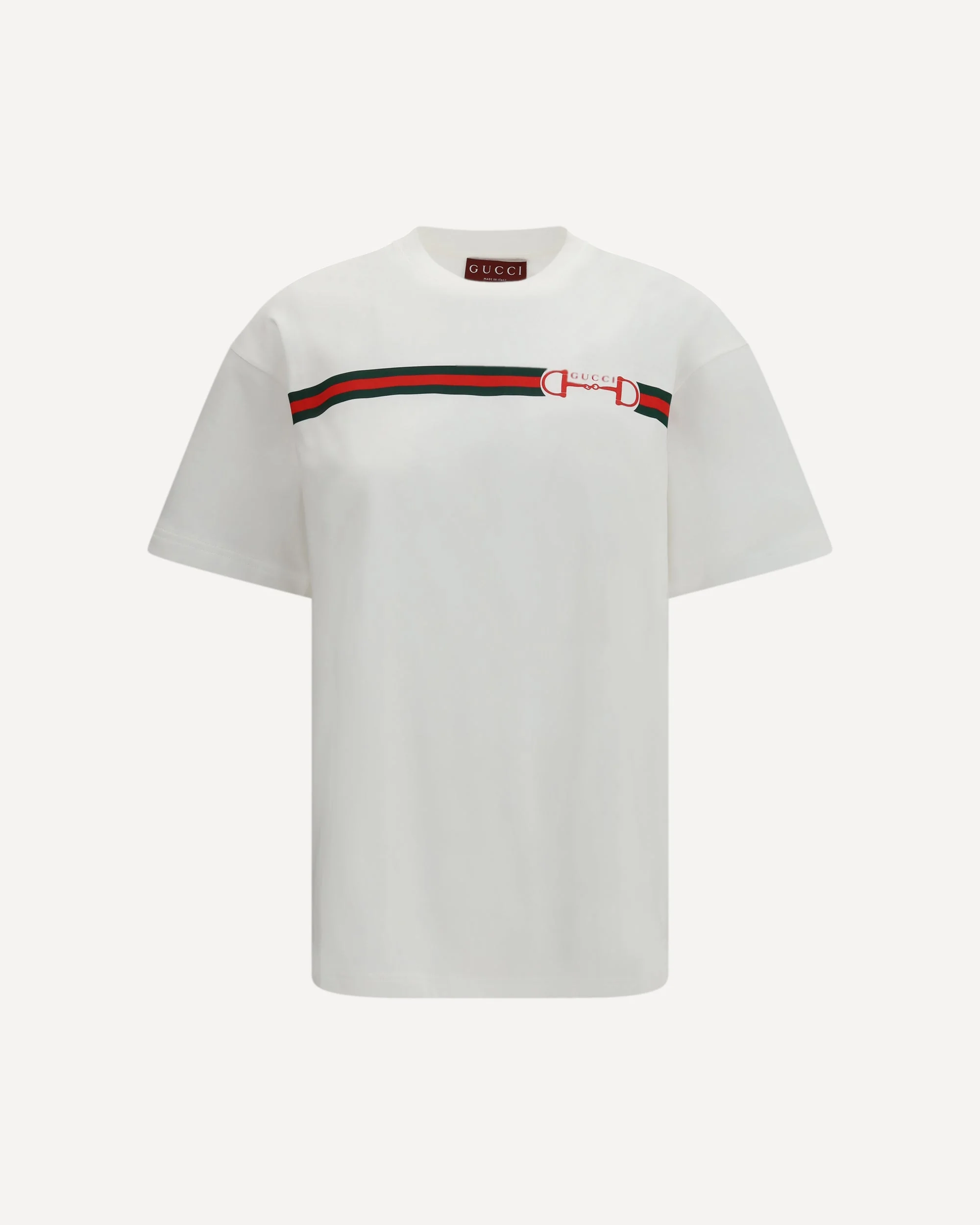 The T-shirt by Gucci is made from pure cotton for optimal comfort and a fresh feel. Featuring a Nastro Web print on the chest, which echoes the brand's iconic motif, it adds a distinctive touch to the design. The ribbed crew neck completes the look with a classic and refined detail. Perfect for a casual yet luxurious look, this T-shirt is ideal for those seeking a simple yet elegant style. DETAILS - Sku: 837959XJHM5_9081 - Season: SS26 - Fit: Oversize - Composition: GENERAL 100% Cotton - MADE IN ITALY