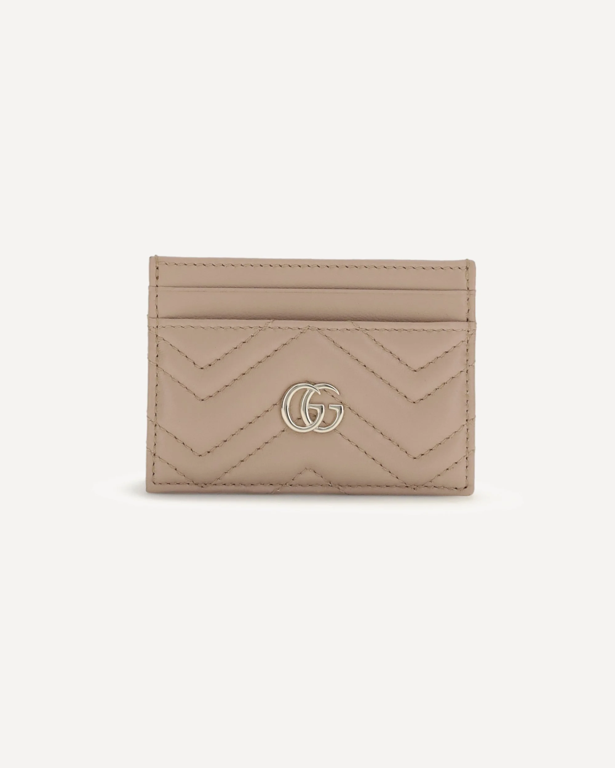 The GG Marmont Cardholder by Gucci belongs to the iconic GG Marmont line, reimagining versatile silhouettes in a palette of fresh and elegant tones. Crafted from chevron matelasse leather, it features the signature Double G metal detail. The interior includes four card slots and one open compartment, while the tone-on-tone fabric lining completes the timeless and sophisticated design. DETAILS - Sku: 443127AAFAX_5753 - Season: SS26 - Dimension: 10x10 - Composition: GENERAL 100% Leather - MADE IN ITALY