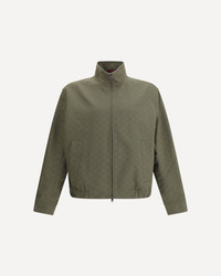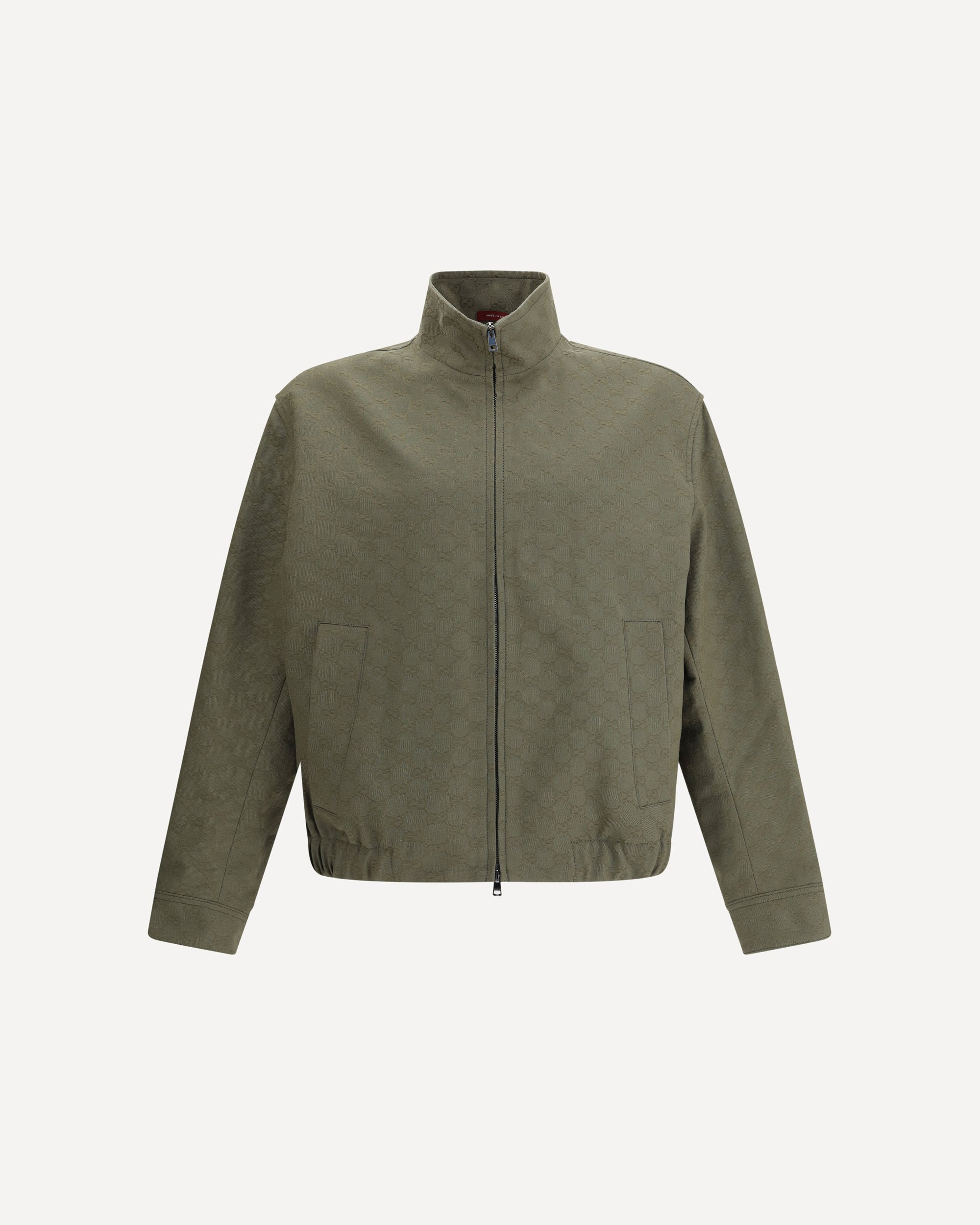 Gucci's GG Supreme Jacket features a sporty, iconic design with a high collar fastened with snaps and a front zipper closure. Two side welt pockets, ribbed hem and cuffs complete the design for a comfortable fit and distinctive style. DETAILS - Sku: 833484ZAF4S_3065 - Season: AW25 - Fit: Regular - Composition: GENERAL 70% Cotton 30% Polyester - MADE IN ITALY