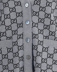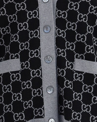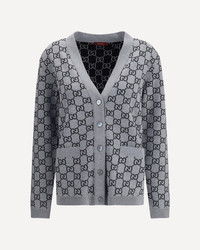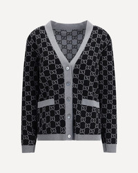 Gucci's GG Supreme reversible Cardigan is made of fine wool tubular jacquard in shades of black and white with the iconic GG pattern. Featuring a V-neckline, low shoulders and long sleeves, it has two front pockets and ribbed trim. A versatile and sophisticated garment perfect for completing smart or casual looks with a distinctive touch. DETAILS - Sku: 798157XKEJP_1045 - Season: AW25 - Fit: Regular - Composition: GENERAL 96% Wool 3% Polyamide 1% Elastane - MADE IN ITALY
