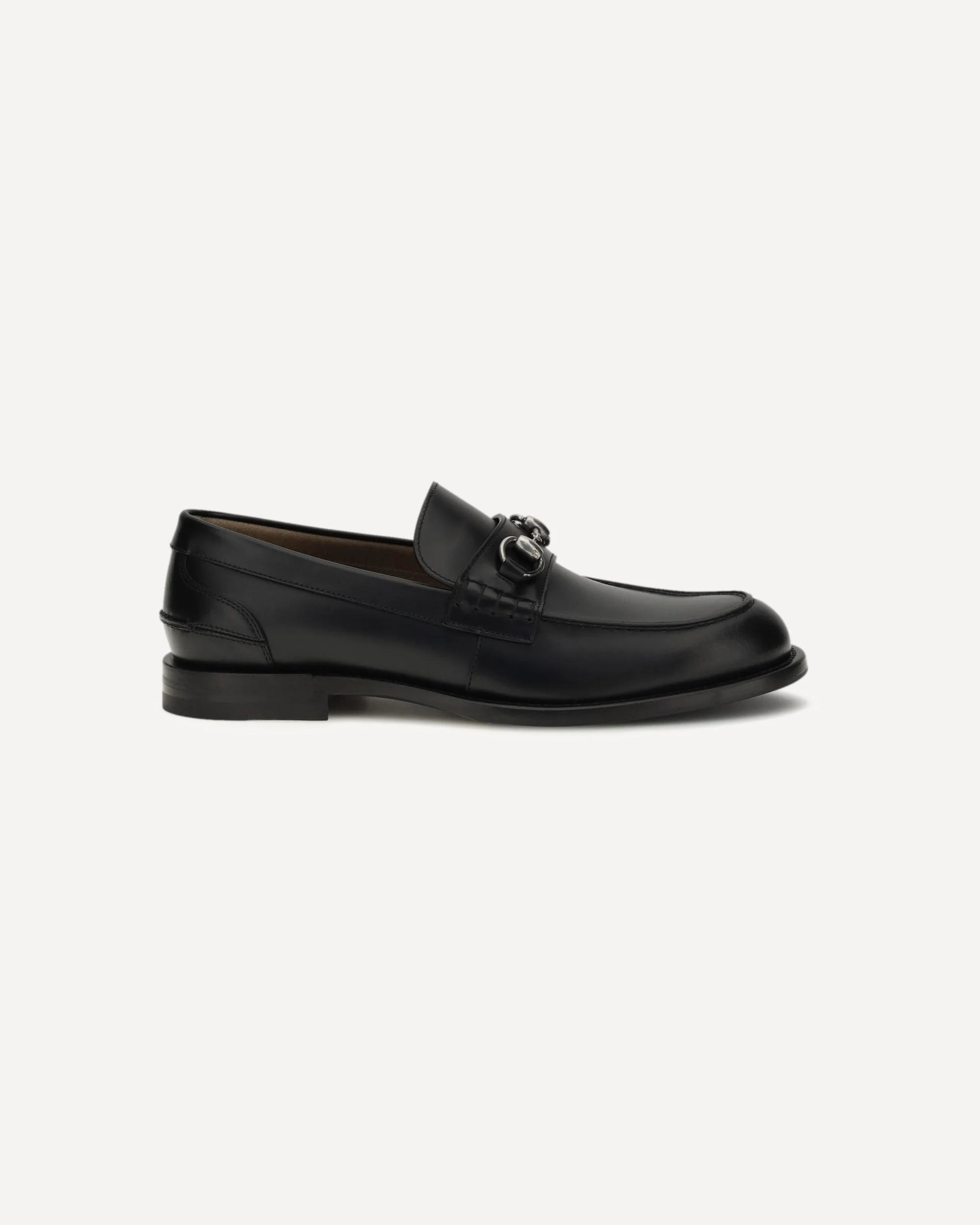 The horsebit Loafers by Gucci are a timeless classic, featuring silver-tone hardware and the brand's signature horsebit detail. The semi-rounded toe offers comfort, while the extra-padded insoles ensure a comfortable fit. The leather soles with rubber inserts guarantee durability and grip. With their low profile, they are ideal for an elegant and versatile look, perfect for any occasion. DETAILS - Sku: 851398AAFAR_1000 - Season: SS26 - Composition: GENERAL 100% Calf Leather Bos Taurus - MADE IN ITALY