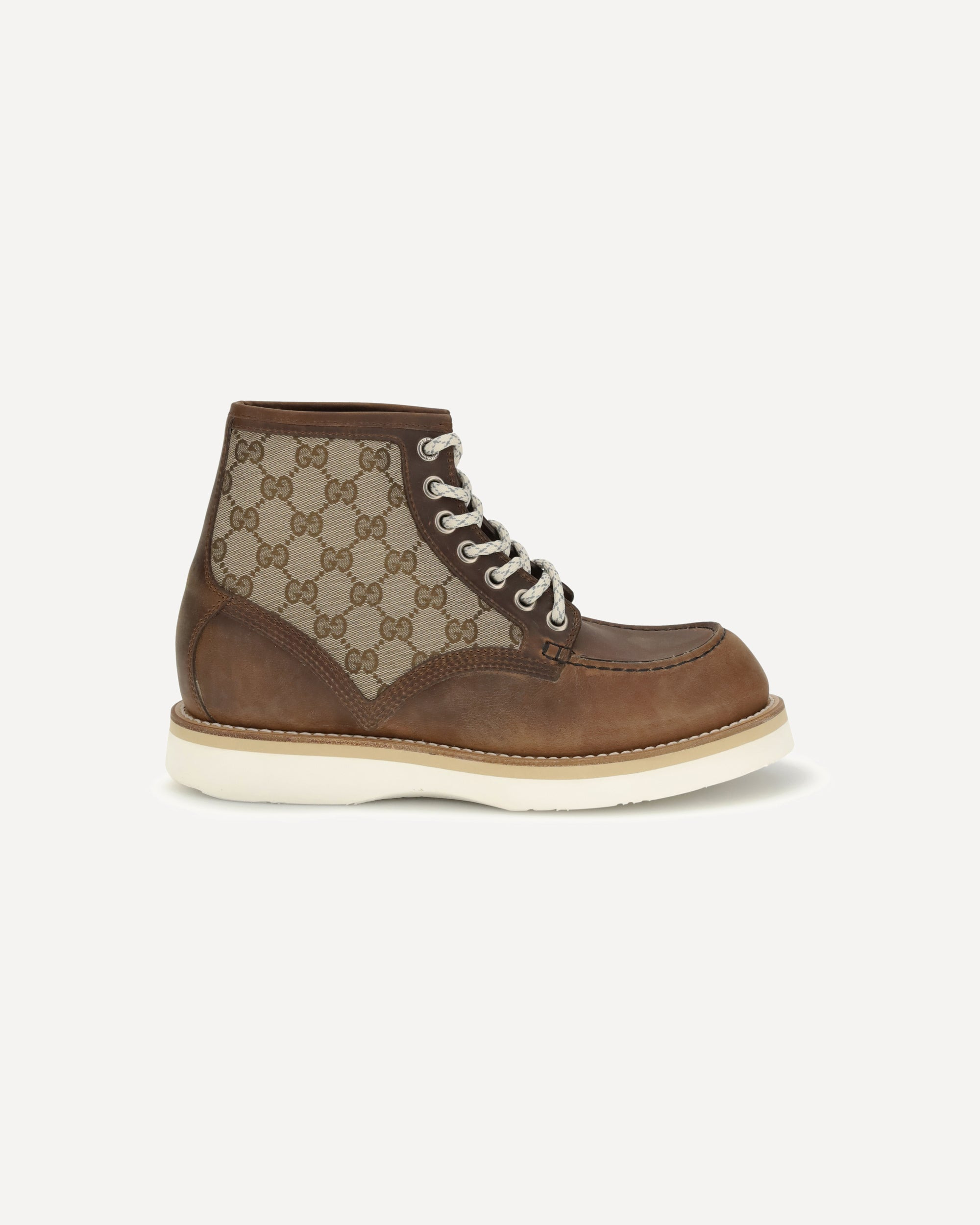 The Lace-Up Boot by Gucci reinterprets a classic silhouette with the brand’s iconic details. A GG fabric insert pays tribute to the Maison’s heritage, while the Goodyear construction ensures durability, artisanal quality, and long-lasting wear. A design that blends tradition and innovation with effortless style. DETAILS - Sku: 831149AAEZE_2541 - Season: AW25 - Composition: GENERAL 100% Leather SOLE 100% Rubber - MADE IN ITALY